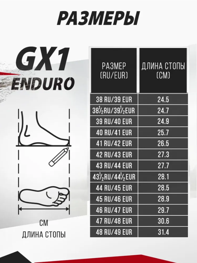 Так же мотоботы GX1 Enduro имеют стальную накладку на носке, четыре алюминиевые регулируемые сменные застежки и дарят возможность получить незабываемые позитивные впечатления от поездок!