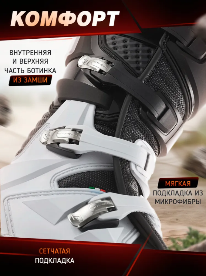 • Термостойкая замша верха для надежного сцепления с мотоциклом