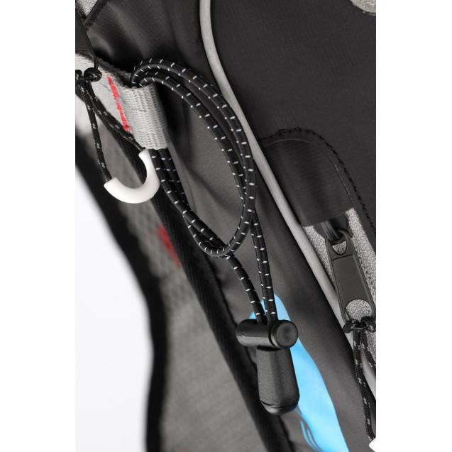 Верх рюкзака выполнен из непромокаемого и устойчивого к истиранию материала, все швы проклеены, внутри вы найдёте гидратор с двухлитровым резервуаром, но и это ещё не всё. Так, здесь имеется интегрированная защита спины, отвечающая требованиям стандарта безопасности CE EN1621 2 Level 1, а также удобные стропы для крепления защиты шеи и шлема любого типа.