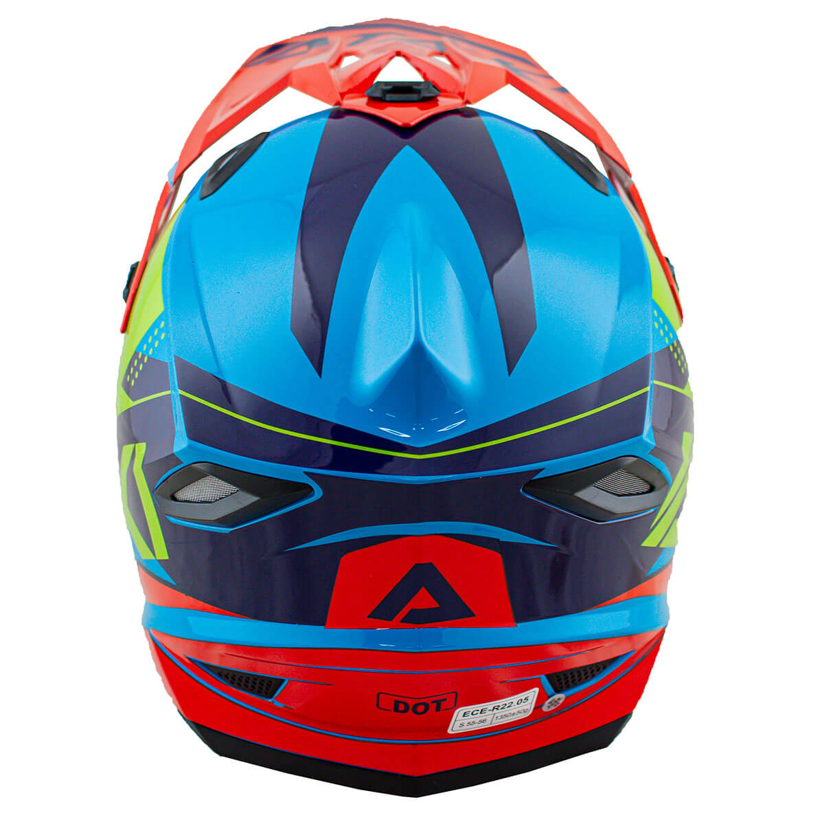 Шлем кроссовый ATAKI JK801 Splash (красный/синий/Hi-Vis зеленый глянцевый, M)