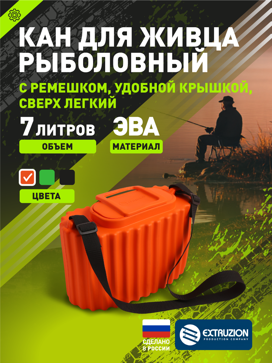 - Рыболовный кан ЭКСТРУЗИОН 7 л (ЭВА) — компактное и надежное хранение живца