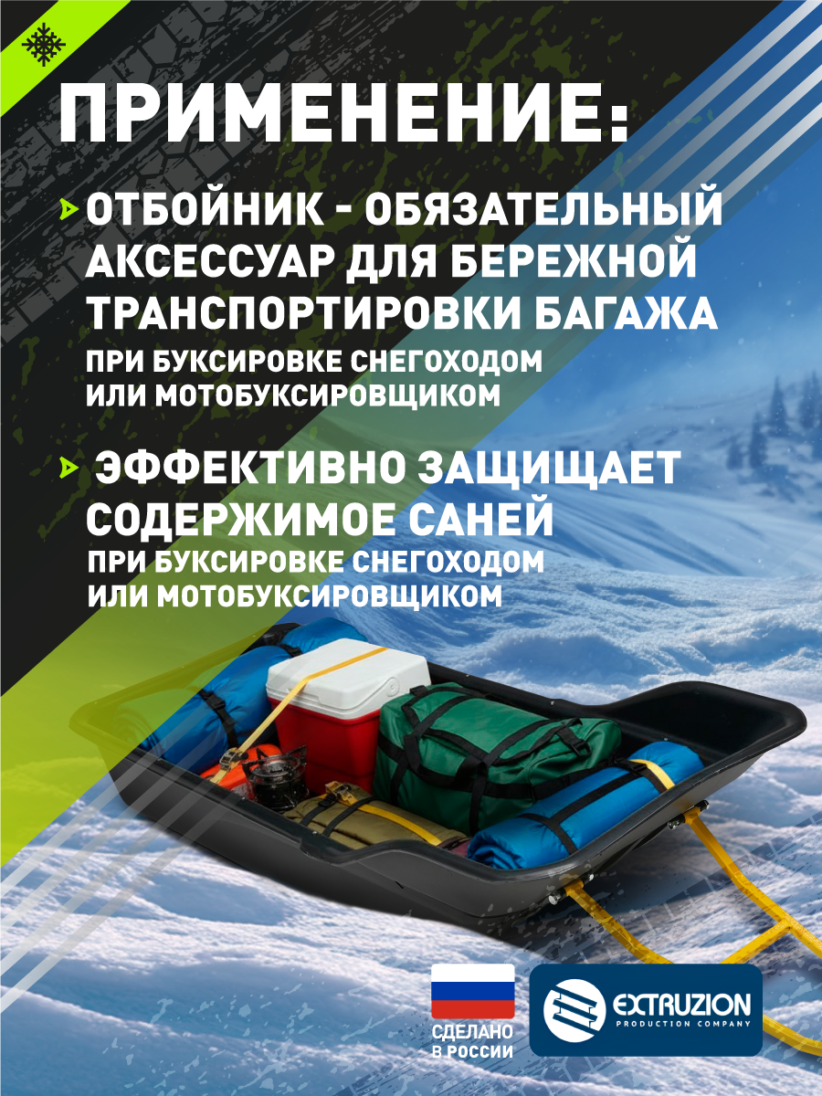 Отбойник для саней С6 LUXE — ваш выбор для чистоты и защиты снаряжения на зимней рыбалке, охоте и любых экспедициях. Надёжное решение для тех, кто привык рассчитывать на свои вещи!