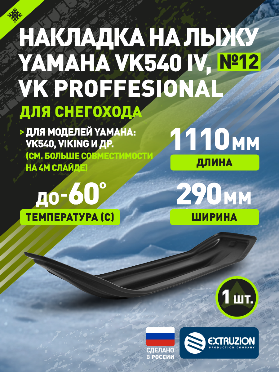 - Специализированная накладка на лыжи для снегоходов Yamaha VK540 IV и VK Professional. Обеспечивает улучшение ходовых качеств и повышение проходимости. Защищает стандартные лыжи от износа и повреждений при эксплуатации в сложных зимних условиях. Прямая установка без доработок.