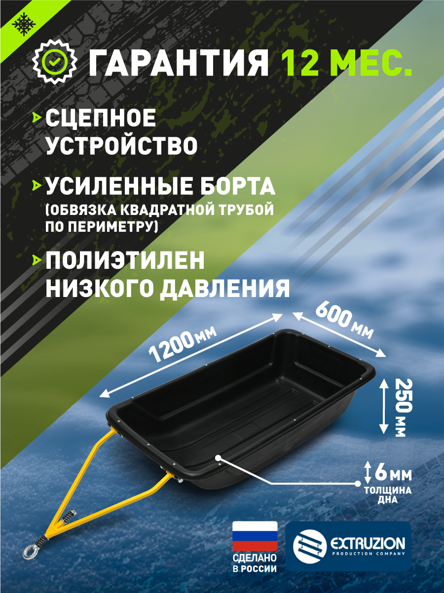Сани волокуши с обвязкой и полозьями C-5 (1200x600x250) для снегохода, мотобуксировщика, рыбалки, охоты.