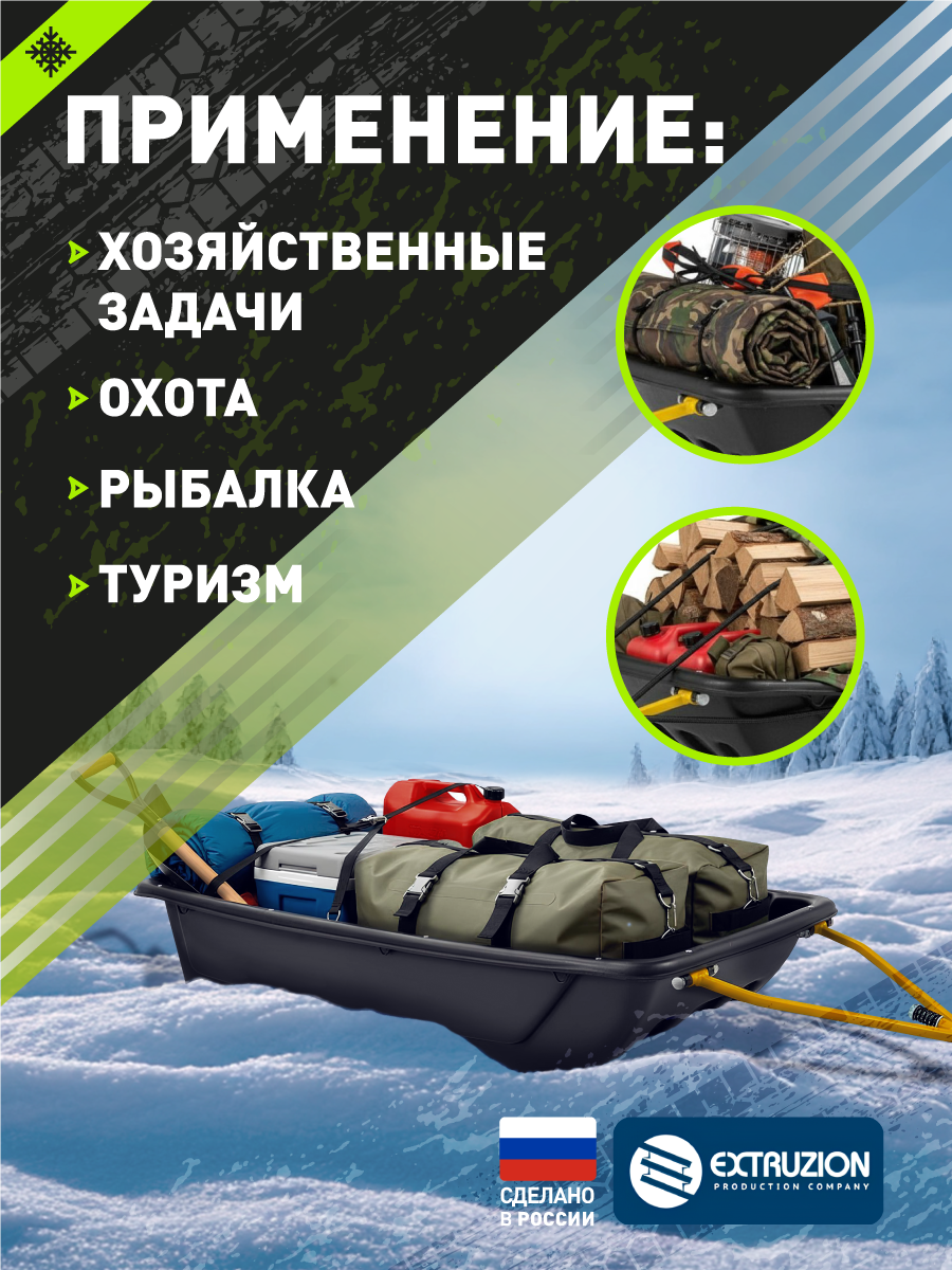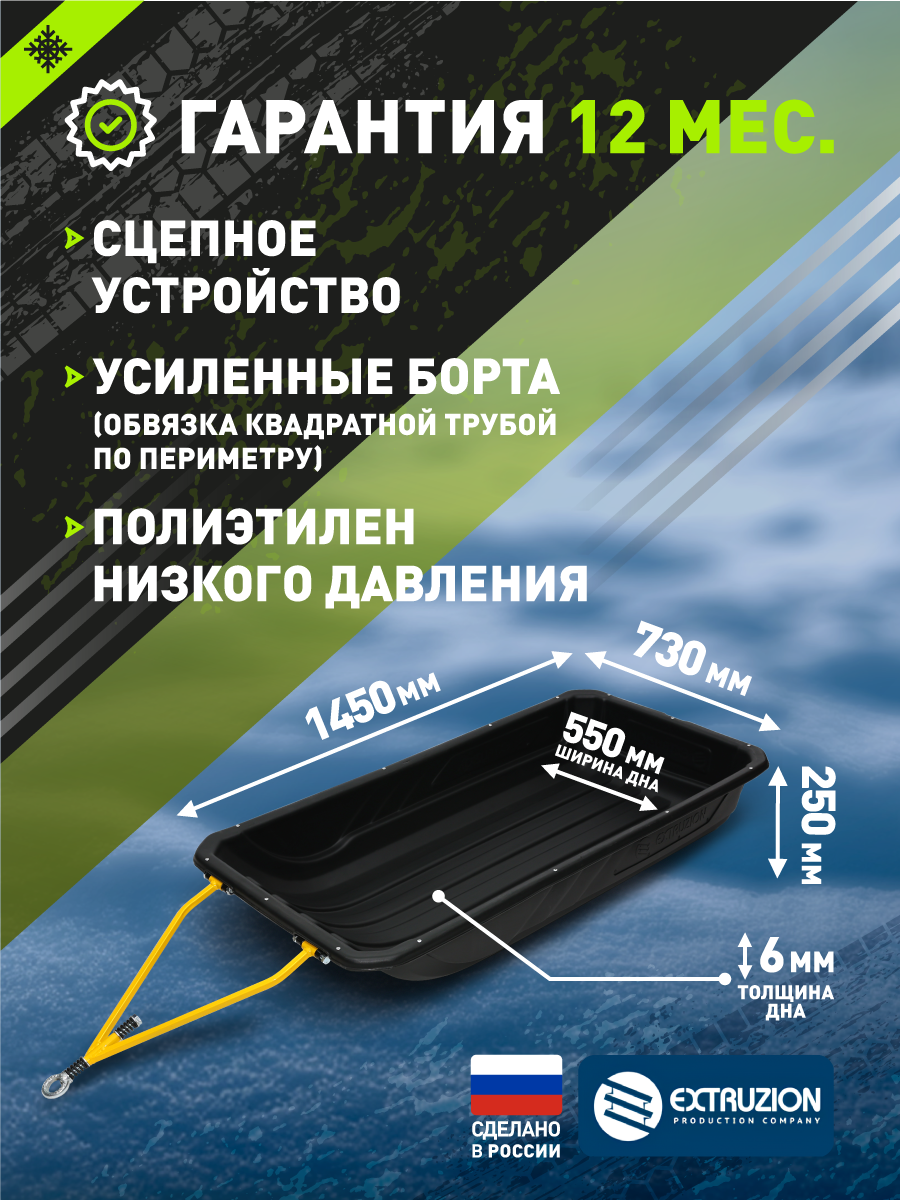 Сани волокуши с обвязкой (без полозьев) С-6 LUXE (1450x730x250) для снегохода, мотобуксировщика, рыбалки, охоты. Ширина дна 550.