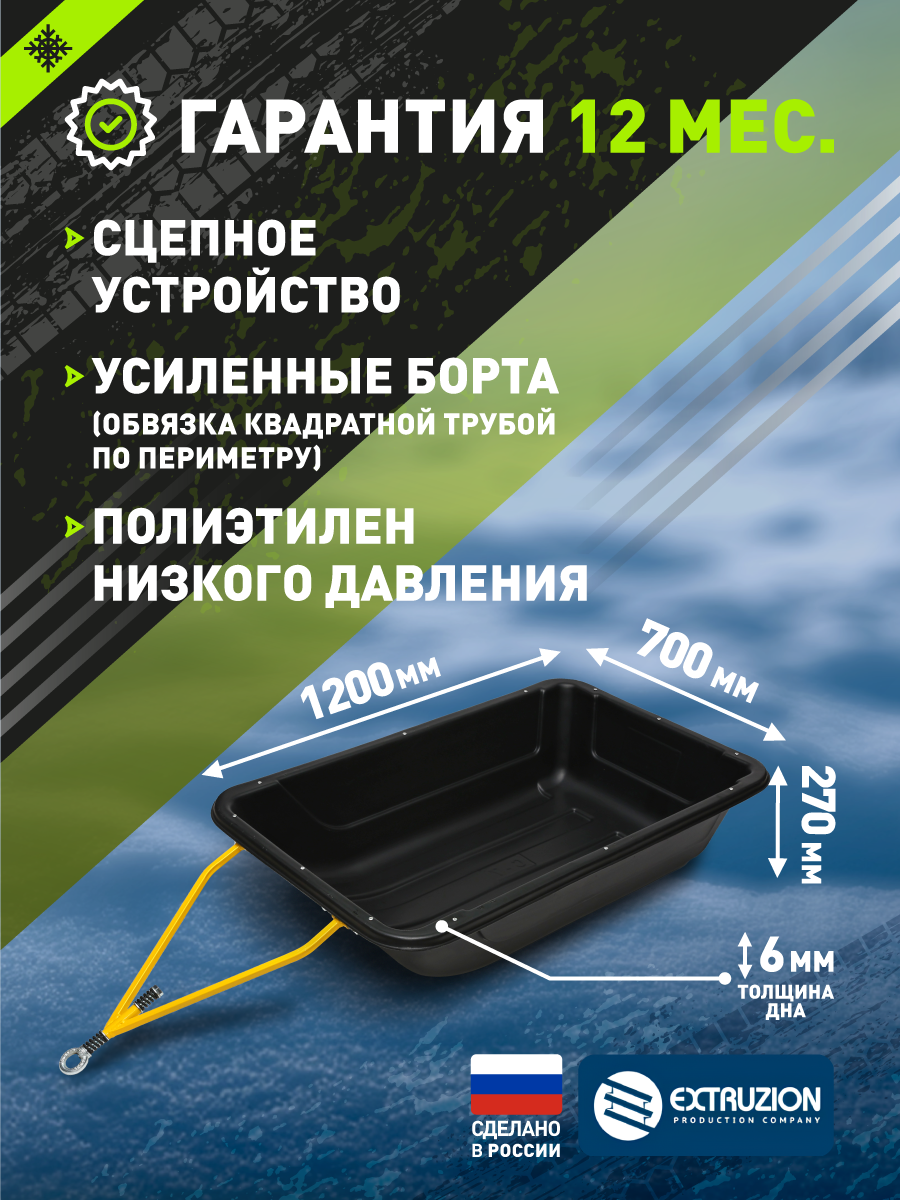 Сани волокуши с обвязкой и полозьями С-6 LUXE (1450x730x250) для снегохода, мотобуксировщика, рыбалки, охоты. Ширина дна 550.