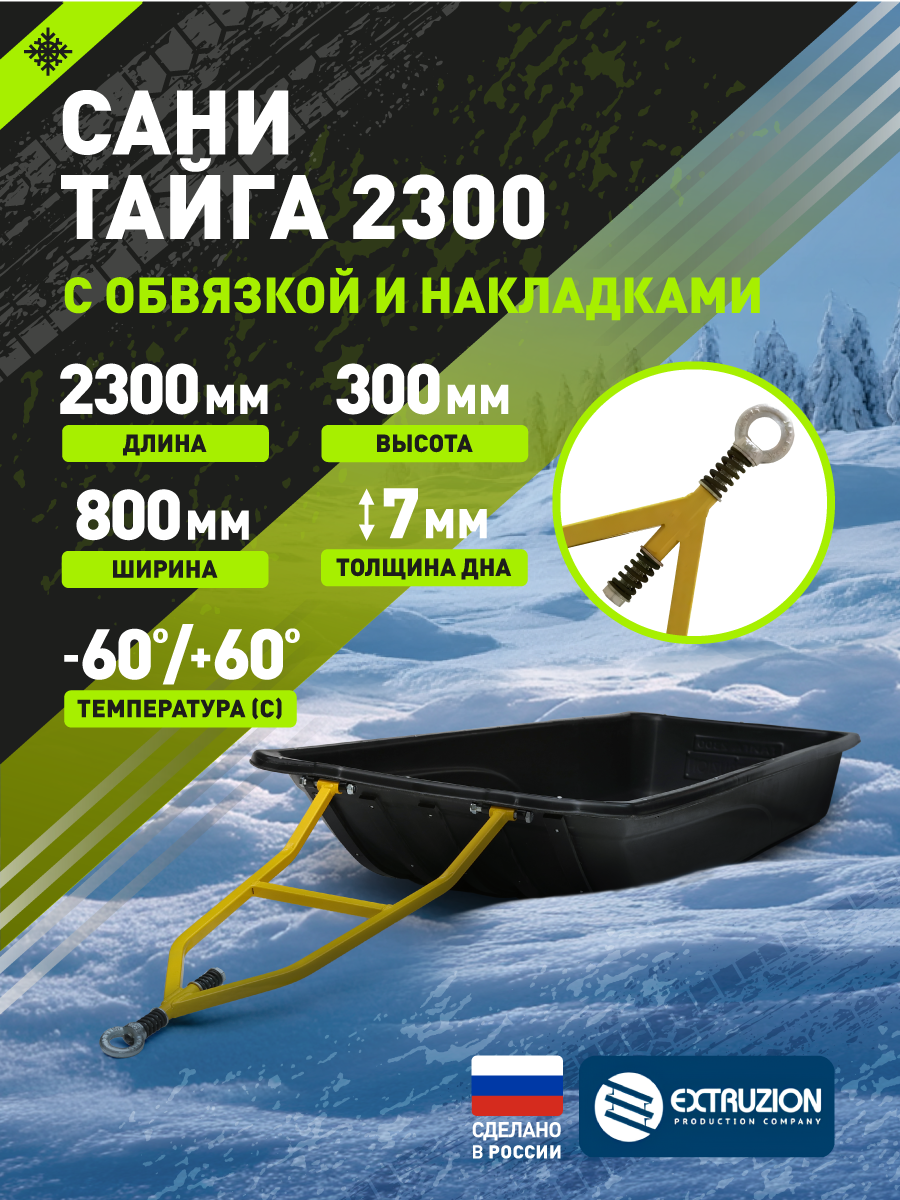 Сани волокуши с обвязкой и полозьями Тайга-2300 (2300x800x300) для снегохода, мотобуксировщика, рыбалки, охоты. Ширина дна 550.
