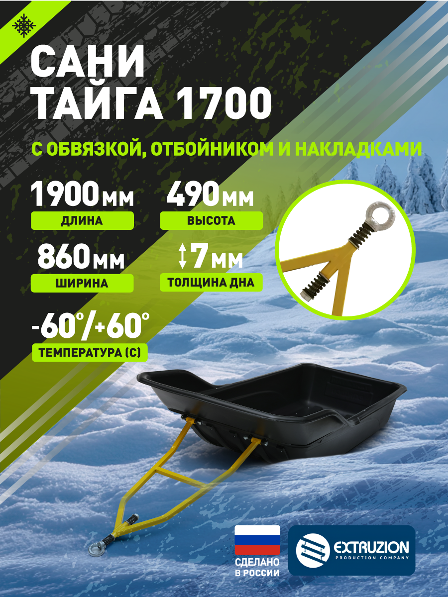 Сани волокуши с обвязкой, полозьями и отбойником Тайга-1700 (1900x860x490) для снегохода, мотобуксировщика, рыбалки, охоты. Ширина дна 550.
