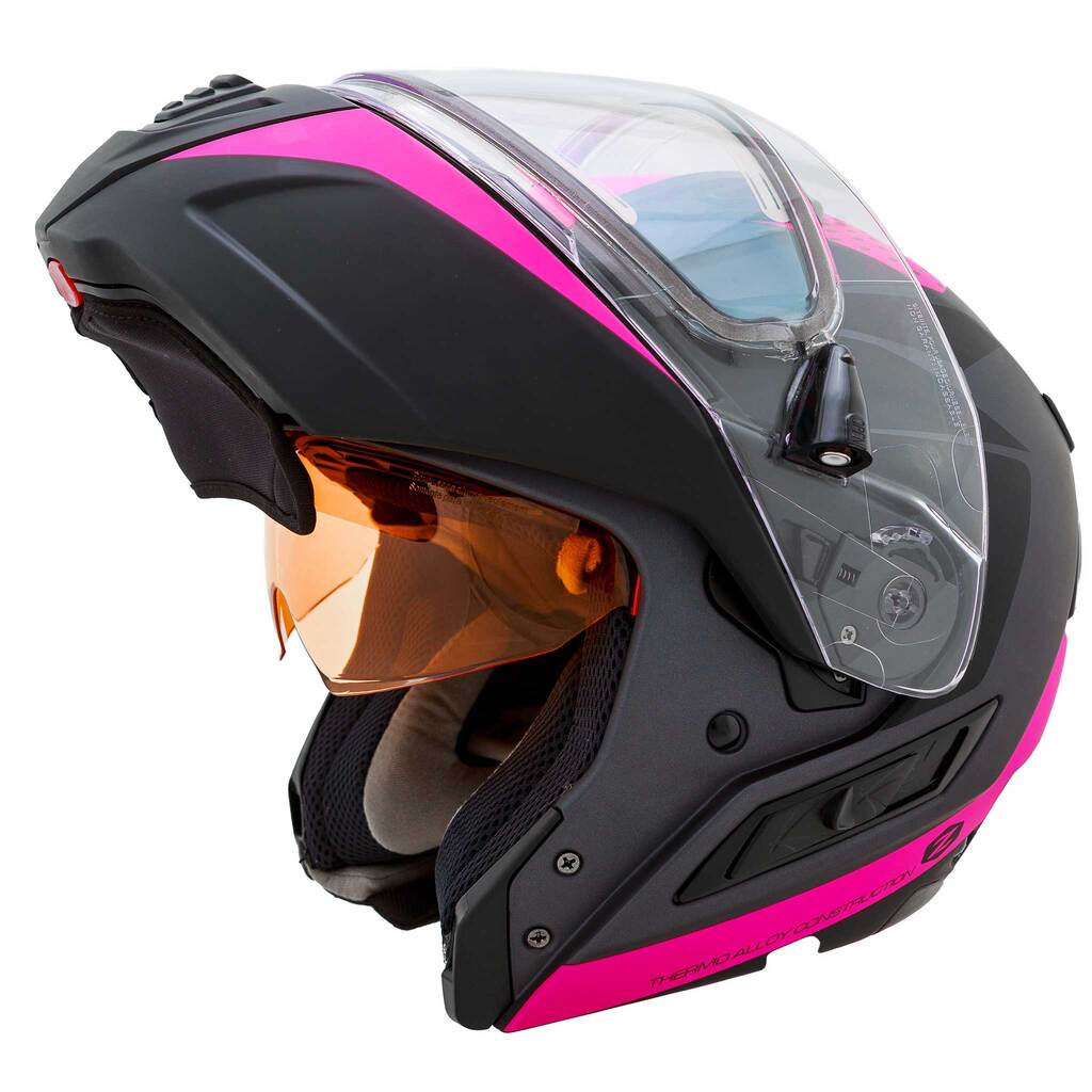 ZOX Condor — это легкий снегоходный шлем модуляр со стеклом с электроподогревом, интегрированным солнцезащитным визором, улучшенной видимостью и съемной моющейся подкладкой. Электроподогрев визора предотвращает запотевание и обледенение, что улучшает обзор и увеличивает длительность поездки, а откидная фронтальная часть создает дополнительный комфорт при эксплуатации.