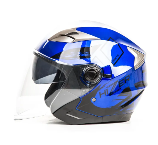 Шлем мото открытый HIZER B208 №3 (L) blue/black (2 визора)