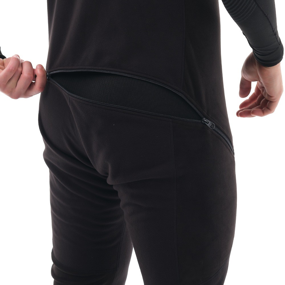 Черный полукомбинезон из флиса и виндстоппера – разновидность термобелья, обеспечивает повышенную теплоизоляцию в области груди, спины, коленей и паха. Используется как "второй слой": надевается на тонкое термо под штаны или комбинезон. Эта простая вещь сделает спорт и активный отдых зимой значительно более комфортным: легкий и теплый полукомбинезон по достоинству оценят те, кто передвигается на технике (снегоход, сноубайк, квадроцикл), катается на сноуборде, занимается зимней охотой или рыбалкой. В качестве утепляющего слоя пригодится в любой холодный период года: весной и осенью можно носить полукомбинезон под вейдерсами и непромокаемым мембранным костюмом.