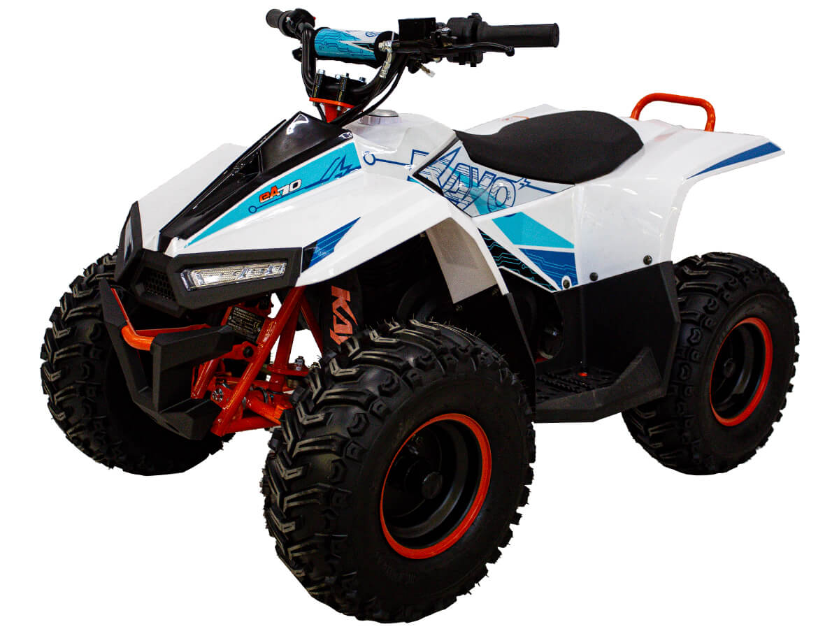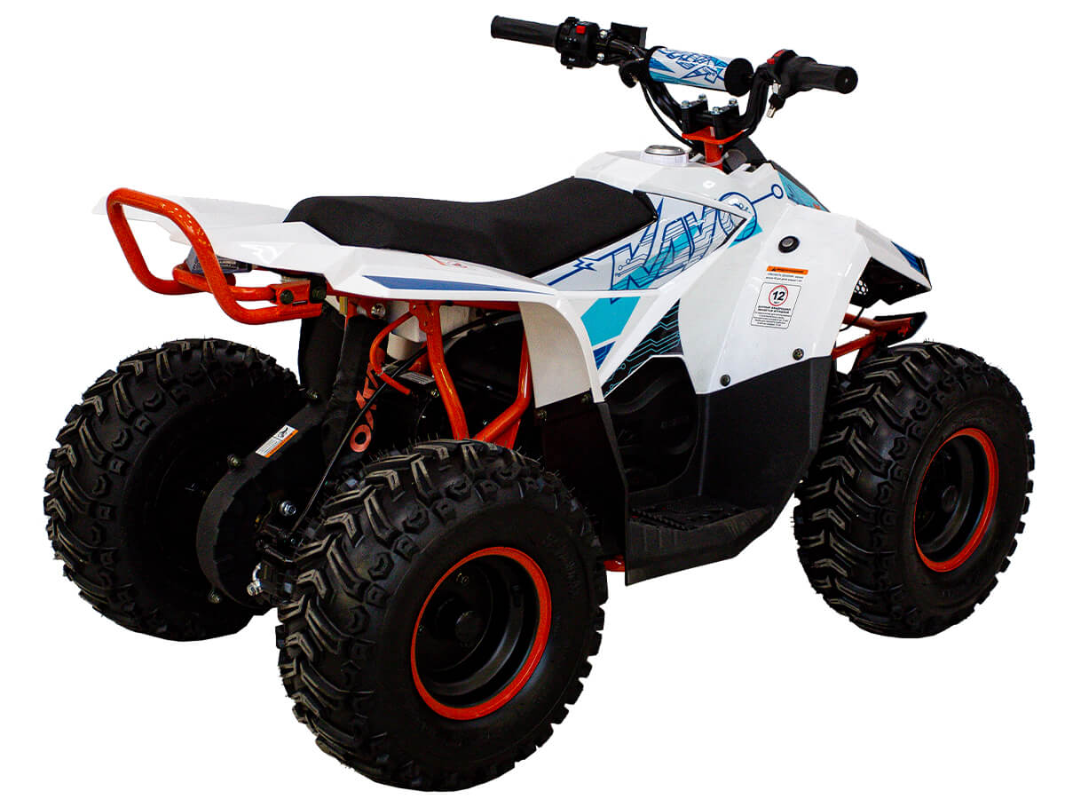 Оснащён бесщёточным электродвигателем мощностью 500 Вт. Обеспечивает плавную и бесшумную езду без выхлопных газов. Свинцово-кислотный аккумулятор 48V20AH обеспечивает запас хода 50 км. Полная зарядка аккумулятора занимает около 8 часов. Трансмиссия представлена 3-ступенчатой коробкой с реверсом. Квадроцикл имеет систему плавного ускорения и торможения, что обеспечивает комфорт и безопасность во время заездов. Имеется регулируемый ограничитель максимальной скорости. Грузоподъёмность квадроцикла 50 кг.