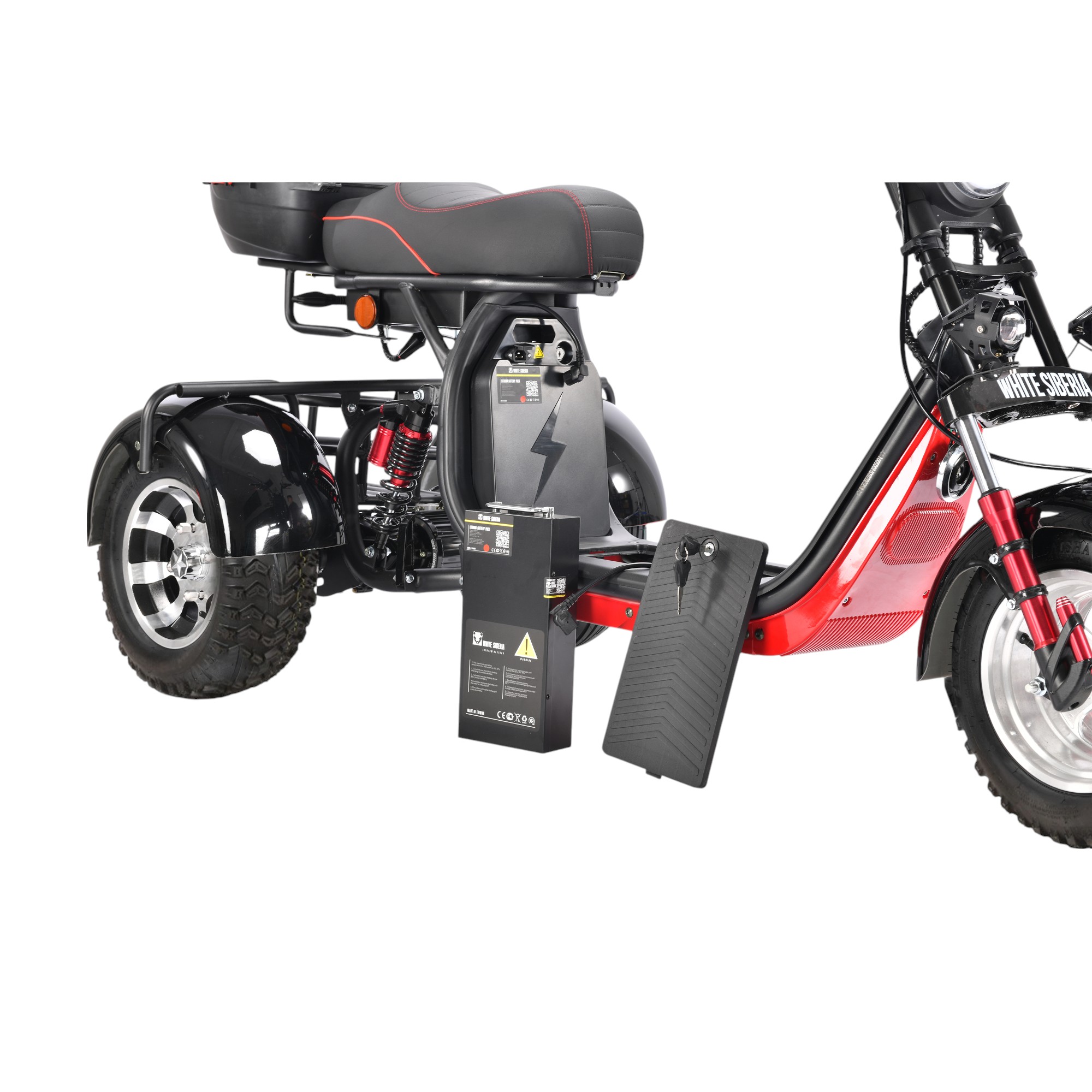 Электроскутер WHITE SIBERIA PRO TRIKE 3000W. Самый мощный и комфортный трицикл на российском рынке. Безопасный и надежный, он станет незаменимым помощником для людей, постоянно или сезонно проживающих за городом. Благодаря большой грузоподъемности (260 кг) и емкой АКБ, трицикл идеально подойдет для длительных поездок в магазин, в лес за грибами или ягодами, на рыбалку или для любых приятных прогулок.