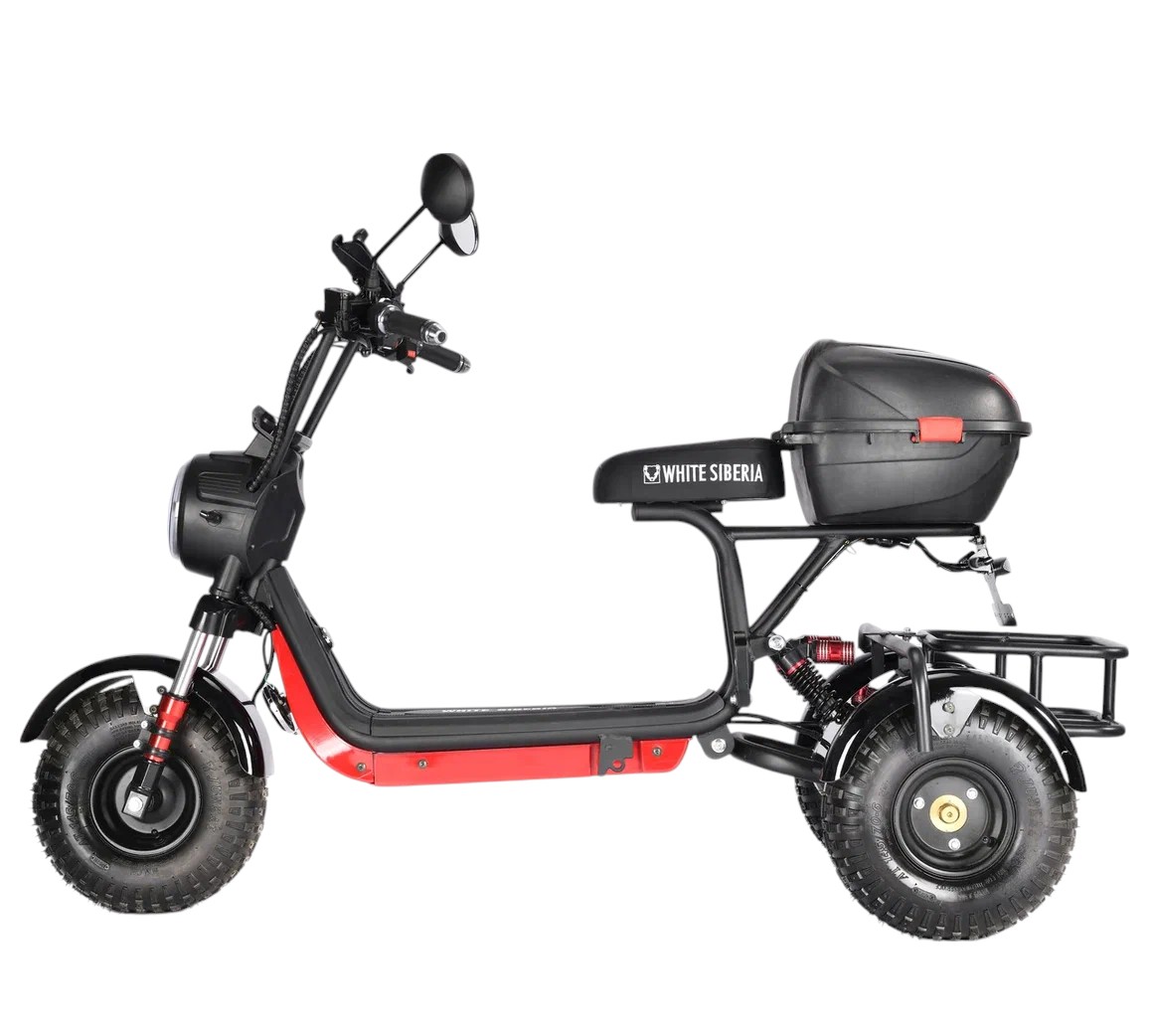 Электротрицикл WHITE SIBERIA TRIKE MINI RED 1500W - "мини" трицикл. Безопасный и надежный, он станет незаменимым помощником для людей, постоянно или сезонно проживающих за городом, а за счёт своей компактности и в городской среде.