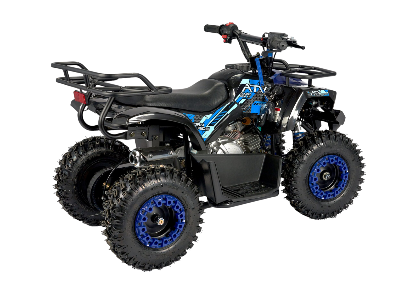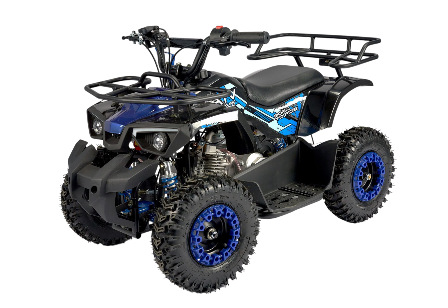 Простой надежный квадроцикл с 4-х тактным бензиновым мотором прекрасно справится с нагрузкой до 45 кг. Рекомендуемый возраст водителя данной модели от 3-7 лет. Дети допускаются к управлению только в защитной одежде, шлеме и под контролем взрослого. Квадроцикл предназначен ТОЛЬКО для движения по бездорожью, вне дорог общего пользования. Проконтролируйте уровень давления в шинах перед эксплуатацией, корректный показатель обеспечит оптимальную устойчивость и комфорт при езде (рекомендованное давление шин 0,6-0,8 атм). Квадрик – это не просто красивая игрушка для ребенка любого возраста. Это превосходная возможность приобщиться к миру взрослых, развивая при этом ловкость, координацию движений, умение анализировать сложившуюся ситуацию и оперативно реагировать.