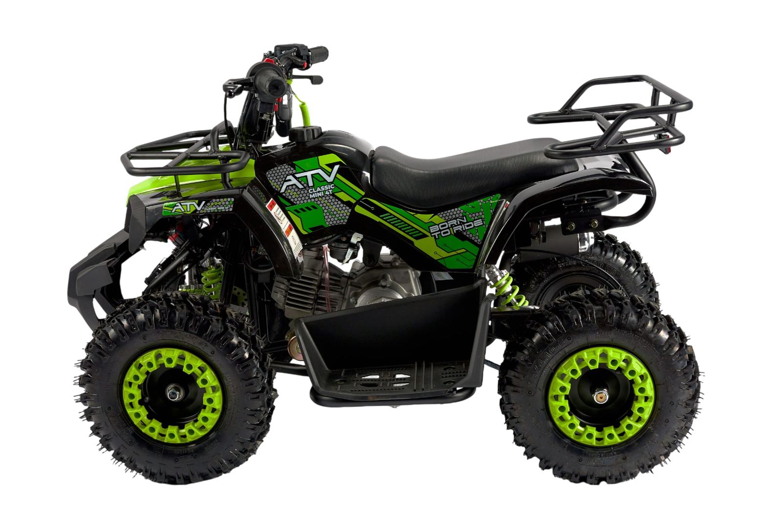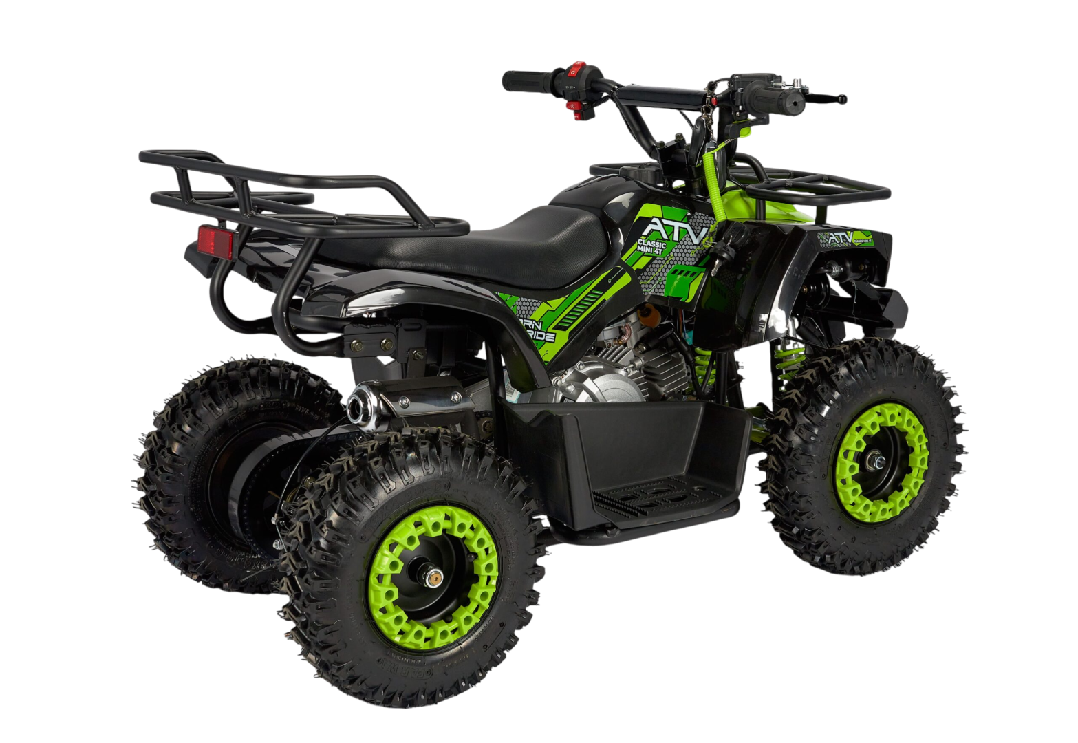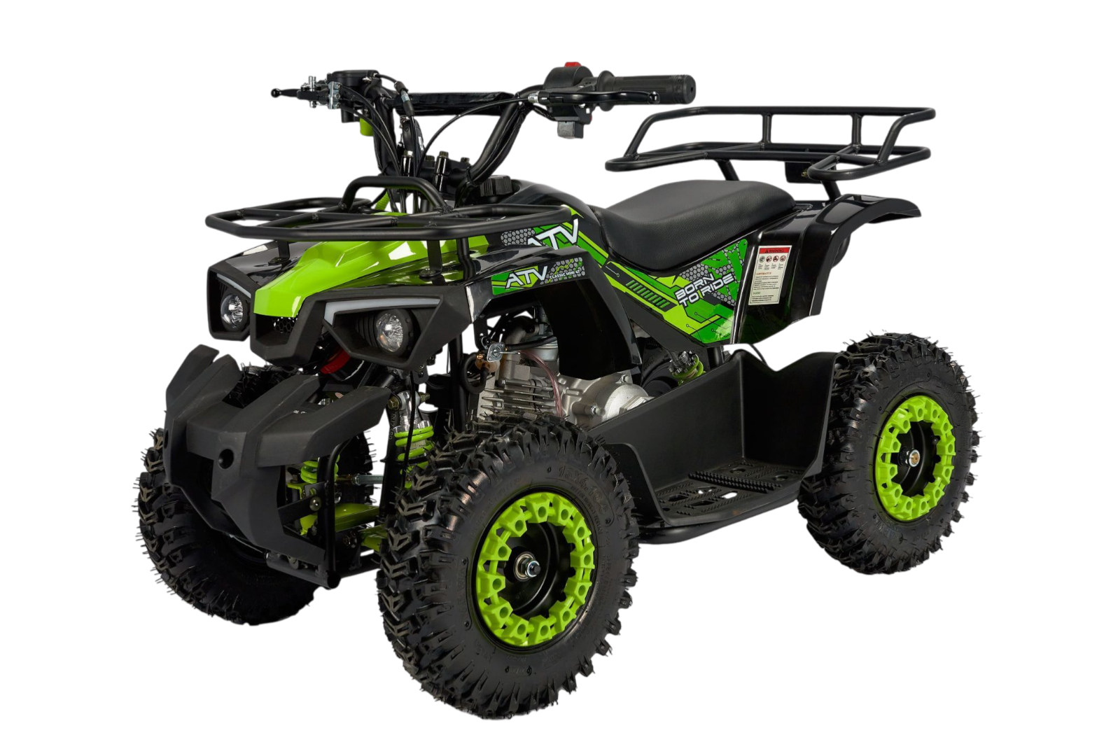 Простой надежный квадроцикл с 4-х тактным бензиновым мотором прекрасно справится с нагрузкой до 45 кг. Рекомендуемый возраст водителя данной модели от 3-7 лет. Дети допускаются к управлению только в защитной одежде, шлеме и под контролем взрослого. Квадроцикл предназначен ТОЛЬКО для движения по бездорожью, вне дорог общего пользования. Проконтролируйте уровень давления в шинах перед эксплуатацией, корректный показатель обеспечит оптимальную устойчивость и комфорт при езде (рекомендованное давление шин 0,6-0,8 атм). Квадрик – это не просто красивая игрушка для ребенка любого возраста. Это превосходная возможность приобщиться к миру взрослых, развивая при этом ловкость, координацию движений, умение анализировать сложившуюся ситуацию и оперативно реагировать.