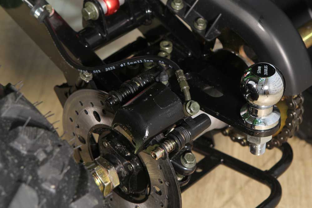 Для того, чтобы максимально обезопасить важные узлы и корпус, на квадроцикл Авантис Хантер 200 установлены мощный кенгурятник и армированные тормозные шланги. Также комплектация включает чеку аварийной остановки двигателя и ограничитель скорости, поэтому, предварительно выбрав нужные настройки, управление техникой можно доверить даже подростку.
