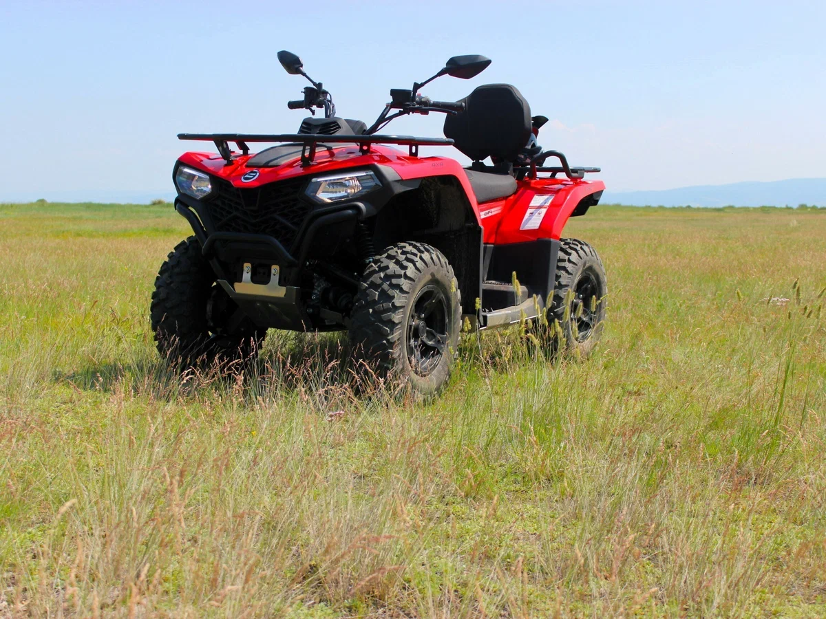 CFORCE 500 Basic – альтернатива 400L EPS. Он чуть менее комфортный из-за отсутствия электроусилителя руля, зато – более проходимый и быстрый благодаря 500-кубовому двигателю мощностью 35 л.с.