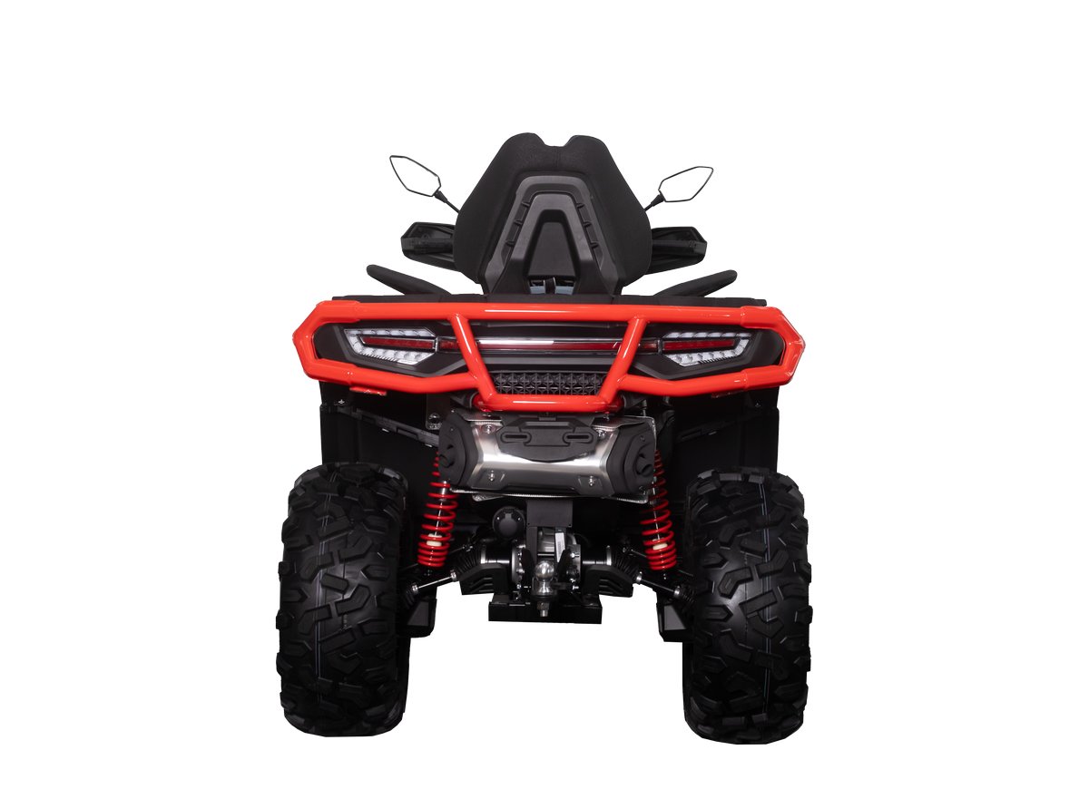 Неизменно мощный и надежный, этот квадроцикл обладает всеми ключевыми характеристики CFORCE 800 HO NEW. Однако эта версия оснащена 27-дюймовыми шинами STAG, установленными уже на 14” диски с бедлоками, что обеспечивает уверенную езду по любой поверхности на высоких скоростях, с возможностью быстрого изменения давления в колесе до минимального значения, не опасаясь «разбортировки» и тем самым повышая проходимость на серьезном бездорожье.