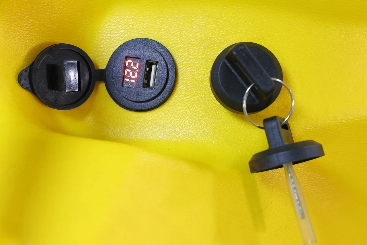 АКБ вынесен в переднею часть квадроцикла, установлен лючок для доступа к АКБ
