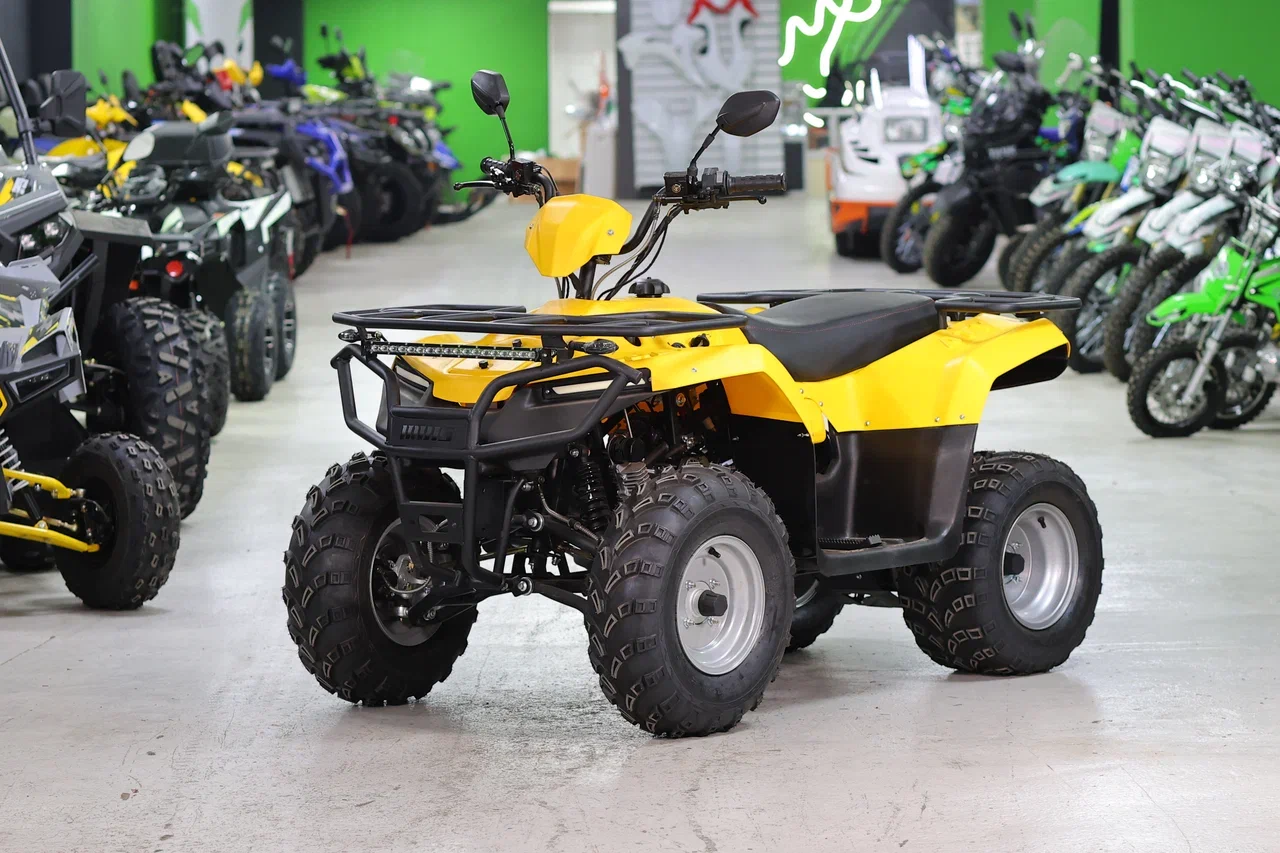 ATV200 имеет современный дизайн и компоновку. В квадроцикле применили новый двигатель 180 куб.см., мощностью 12 л.с. с балансирным валом. Элементы конструкции спроектированы таким образом, что бы обеспечить комфортное передвижение по любому покрытию. Для удобства установлены розетка питания 12 вольт, панель приборов со всей необходимой информацией, электрозапуск двигателя. Широкие колесные арки уменьшают попадание грязи на водителя, продуманное сиденье позволят занять любому человеку удобную посадку на квадроцикле. Бак 10 литров позволяет преодолеть большое расстояние без дозаправки.