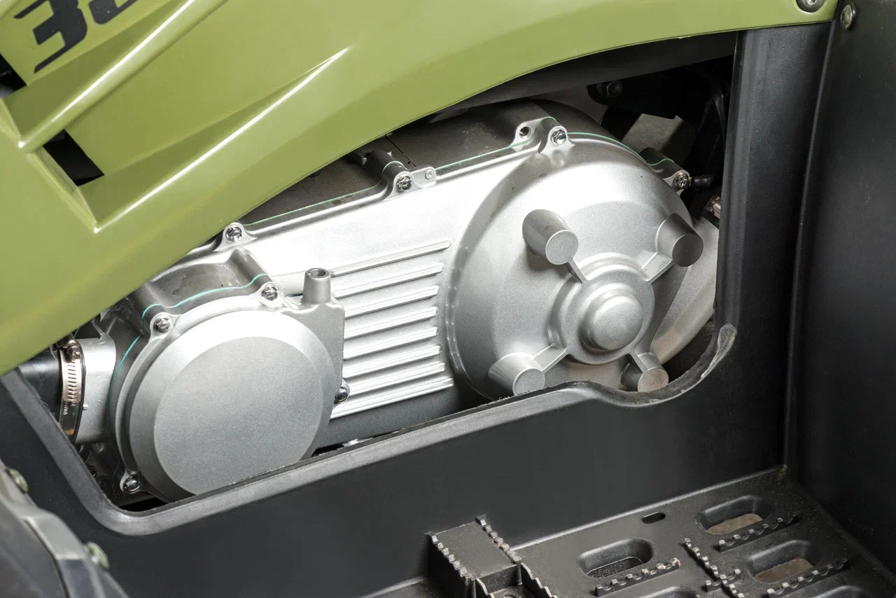 Подключаемый полный привод с блокировкой дифференциала значительно улучшает проходимость квадроцикла и его управляемость на сложных участках дороги, позволяя эффективно распределять крутящий момент между осями и предотвращать занос.