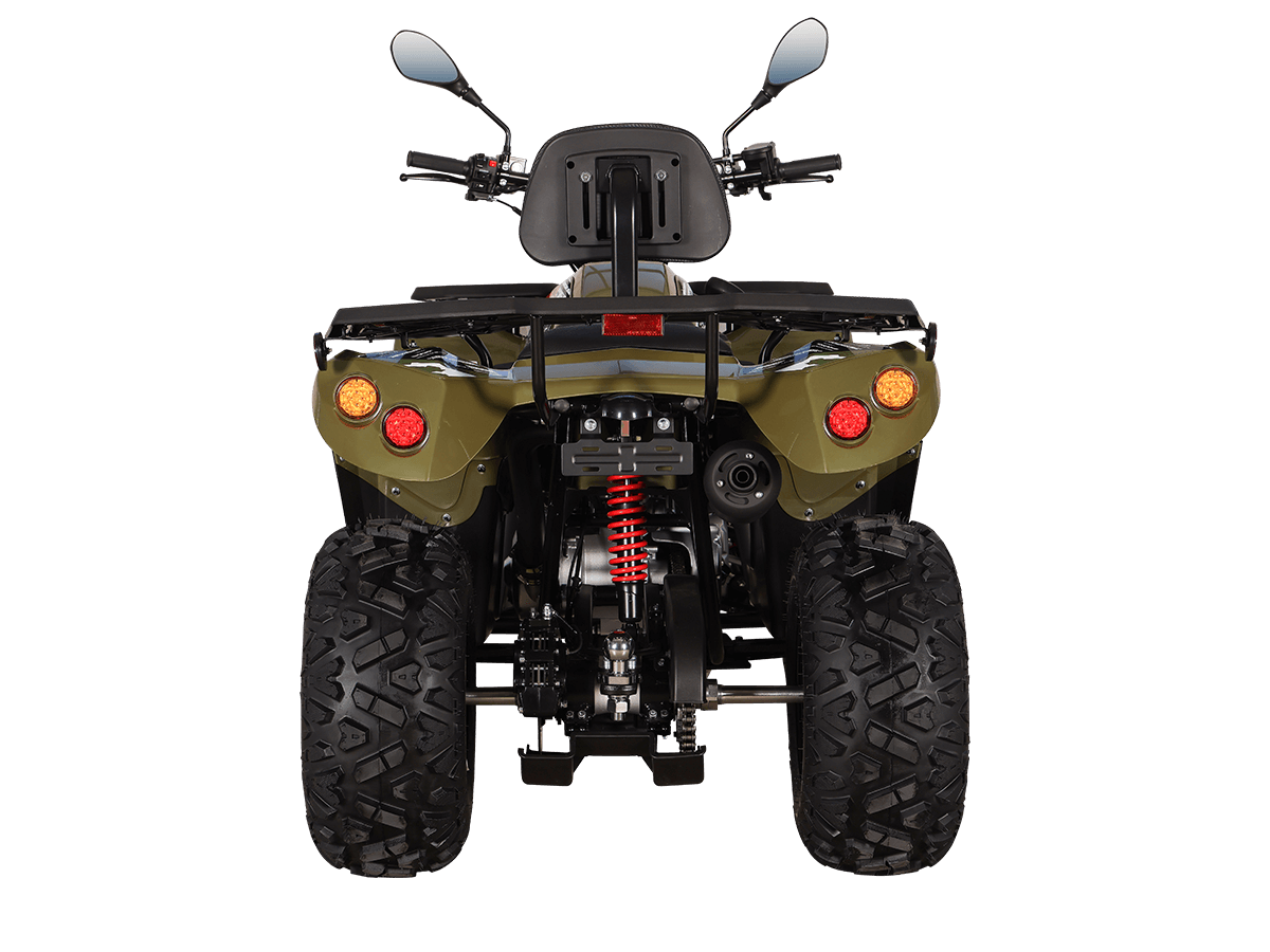 В крепкой раме квадрицикла, проверенной годами и тысячами пользователей, установлен 4-тактный мотор с вертикальным расположением цилиндра. Рабочий объем двигателя в 176 кубических сантиметров позволяет развивать максимальную мощность в 13 лошадиных сил. Данный мотор оснащается балансирным валом, что способствует снижению вибраций и положительно сказывается на комфорте передвижения.