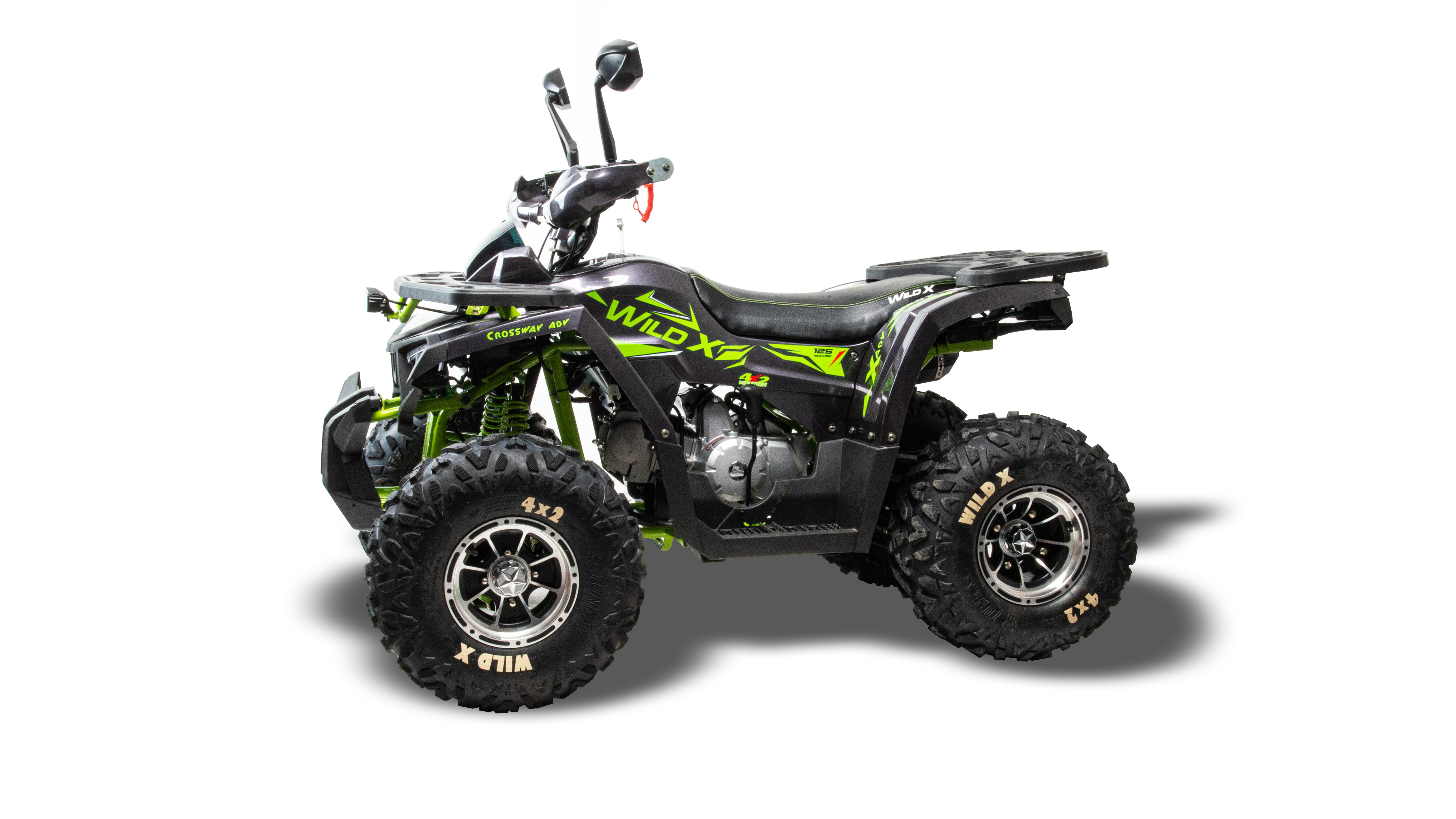 Motoland 125 WILD X PRO – входит в линейку современных и универсальных квадроциклов. Его утилитарный дизайн разработан с учетом вкусов современного поколения и понравится всем без исключения. Его 8 –дюймовые колеса на литых дисках с хорошей внедорожной резиной с легкостью преодолеют все преграды в виде грязи, песка, луж и кочек. У этого квадроцикла отличная управляемость в любых условиях эксплуатации, благодаря грамотной настройке подвески. Данная модель оснащена новинкой, отдельным подрамником на сайлентблоках под ДВС а так же на двигателе установлен балансирный вал , что обеспечивает максимально комфортную езду. Усиленная 428 цепь Максимальная скорость у Motoland 125 WILD X PRO 125 кубов – 60 км/ч. Объем топливного бака составляет 3,5 л. Также помимо основной светодиодной оптики, на данном квадроцикле спереди установлена дополнительная светодиодная фара, подворотники, зеркала заднего вида, защита рук, встроенная функция родительского контроля и автоматическая коробка передач D-N-R. с реверсом, которая установлен на усиленной раме, что дает уверенность в прочности конструкции. Любой быстро овладеет навыками езды на данной технике и получит массу запоминающихся эмоций.