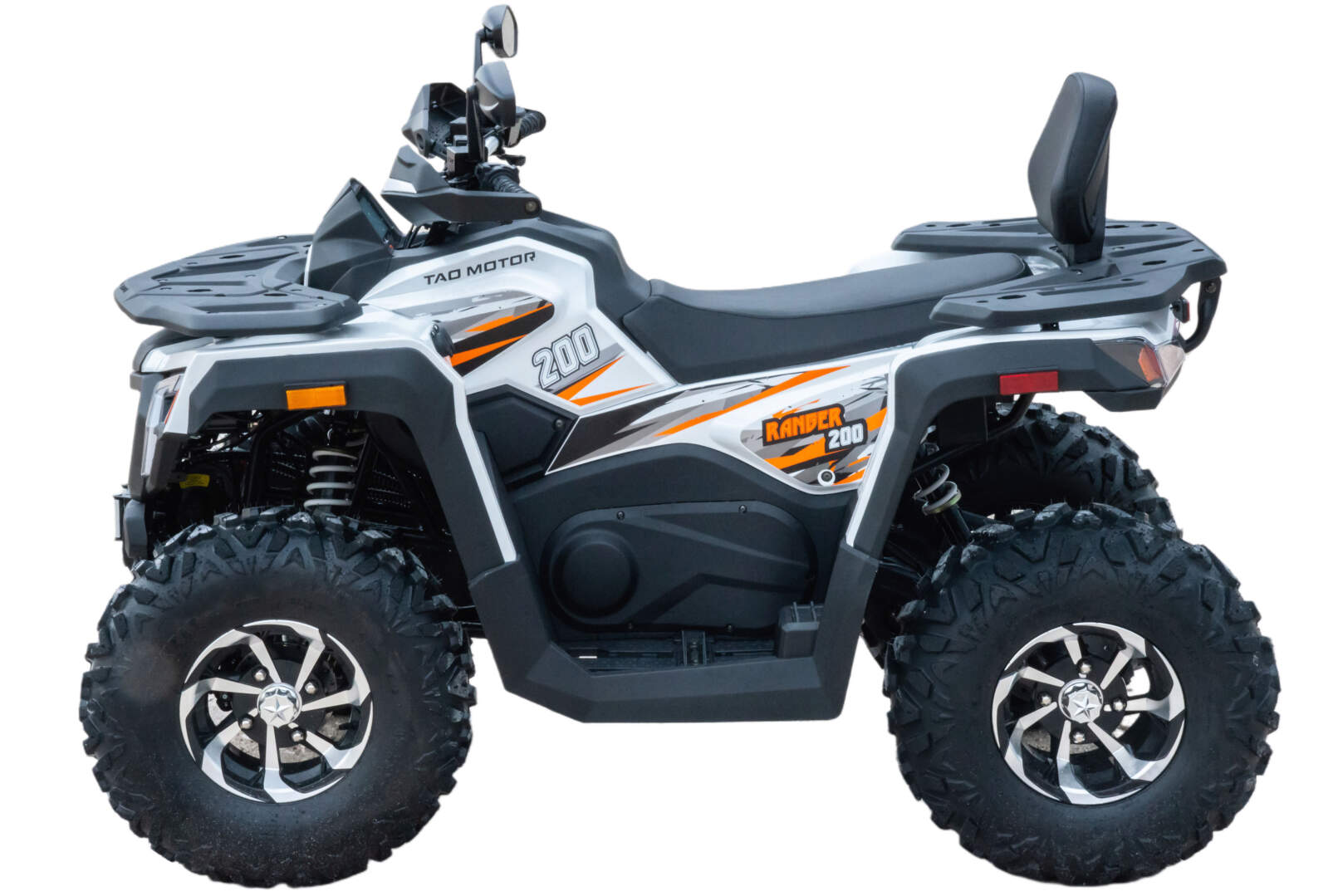 Данная модель оснащена ВЕРТИКАЛЬНЫМ двигателем, автоматической коробкой передач, увеличенными воздухозаборниками, электростартером. Предназначен для езды по бездорожью, имеет хорошую проходимость, прекрасно ведёт себя на песке, грунте и в грязи. Это одна из лучших моделей ATV по соотношению цены и качества. Подходит для новичков и любителей. Новые сбалансированные амортизаторы позволяют легко преодолевать ямы, ухабы и другие неровности. Задняя подвеска с новым, усиленным моно-амортизатором. Квадроцикл доступен в белом цвете с модернизированной линзовонной светодиодной оптикой, увеличенными ходовыми огнями и поворотниками отлично выглядит в своем новом агрессивном стиле. Дополнительная спинка пассажира, а так же USB разъем и прикуриватель. ATV RANGER 200 весит 160 кг, выдерживает нагрузку до 150 кг. Рама стальная, трубчатая, покрашена в цвет. Прочный облицовочный пластик не ломается при сгибании. Квадроцикл имеет оригинальные литые колесные диски, передние - 23х7 R10 и задние - 22х10 R10. Габариты в собранном виде (ДхШхВ): 1800х1000х1280.