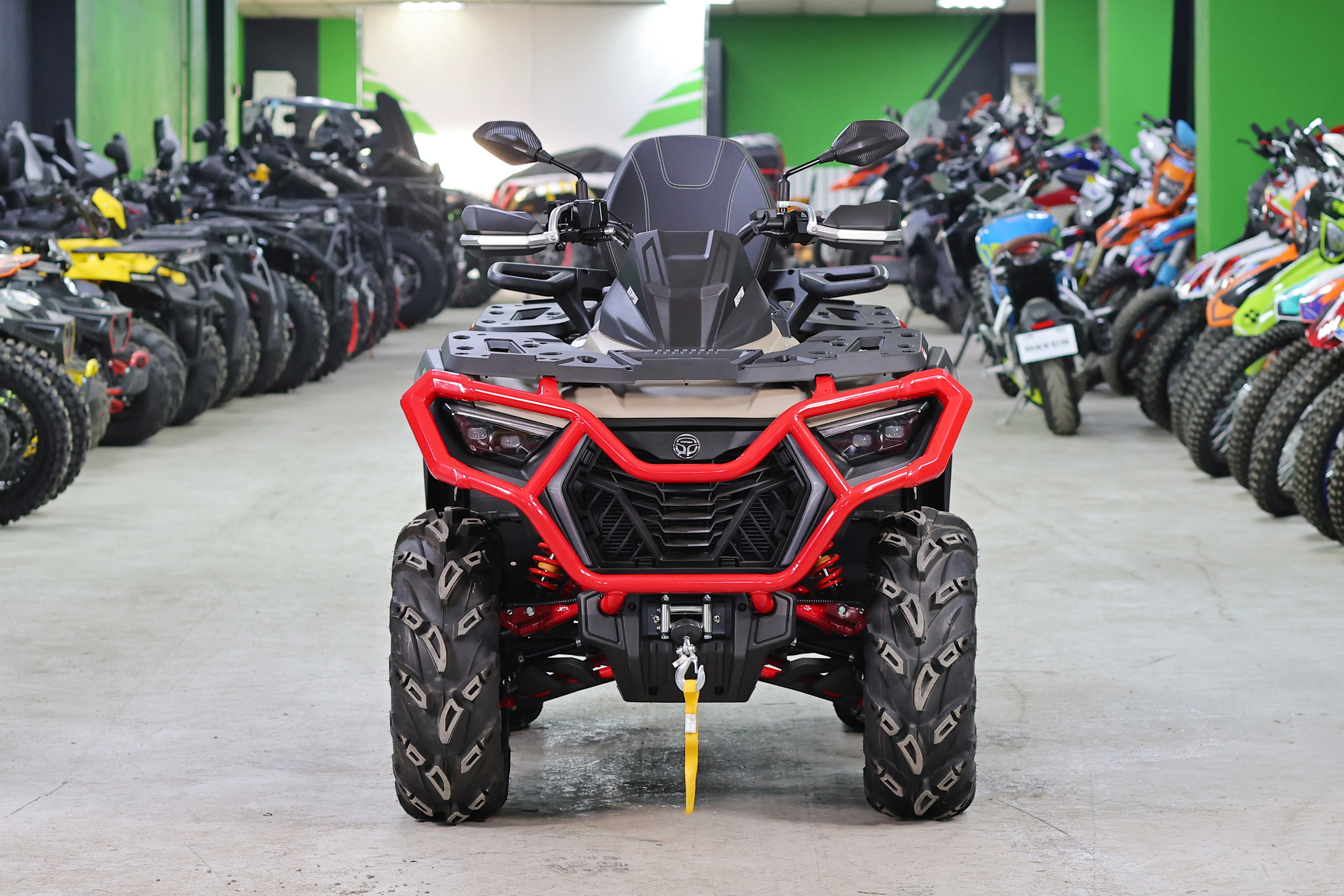 Охлаждение Даже в жаркую погоду двигатель работает стабильно благодаря эффективной системе охлаждения и высокопроизводительной помпе. Производительность квадроцикла сохраняется даже при высоких температурах. Аксессуары – Лебедка с усилием 1,6 т (3500 LBS) входит в базовую комплектацию.