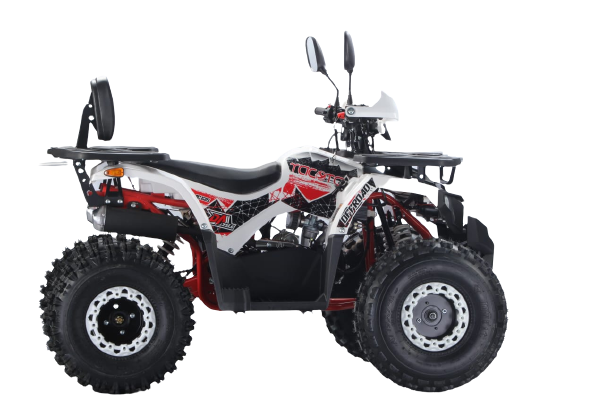 Квадроцикл YACOTA DAZZLE LUX подойдет детям от 8-ми до 16 лет. Современный дизайн, простое управление, оптимальный набор опций. Квадрик оборудован четырехтактным двигателем 125 куб, мощностью 9 л.с. Трансмиссия - автоматическая (вариатор, плюс задний ход). Запуск - электростартер. Данная модель комплектуется металлическими багажниками (спереди и сзади), светодиодной оптикой, поворотниками, зеркалами, защитой рук, подогревом ручек, спинкой для пассажира, электронной приборной панелью, дополнительным светодиодным освещением. Есть ограничитель скоростного режима. Разгоняется квадрик довольно быстро до максимальных 50 км/ч.