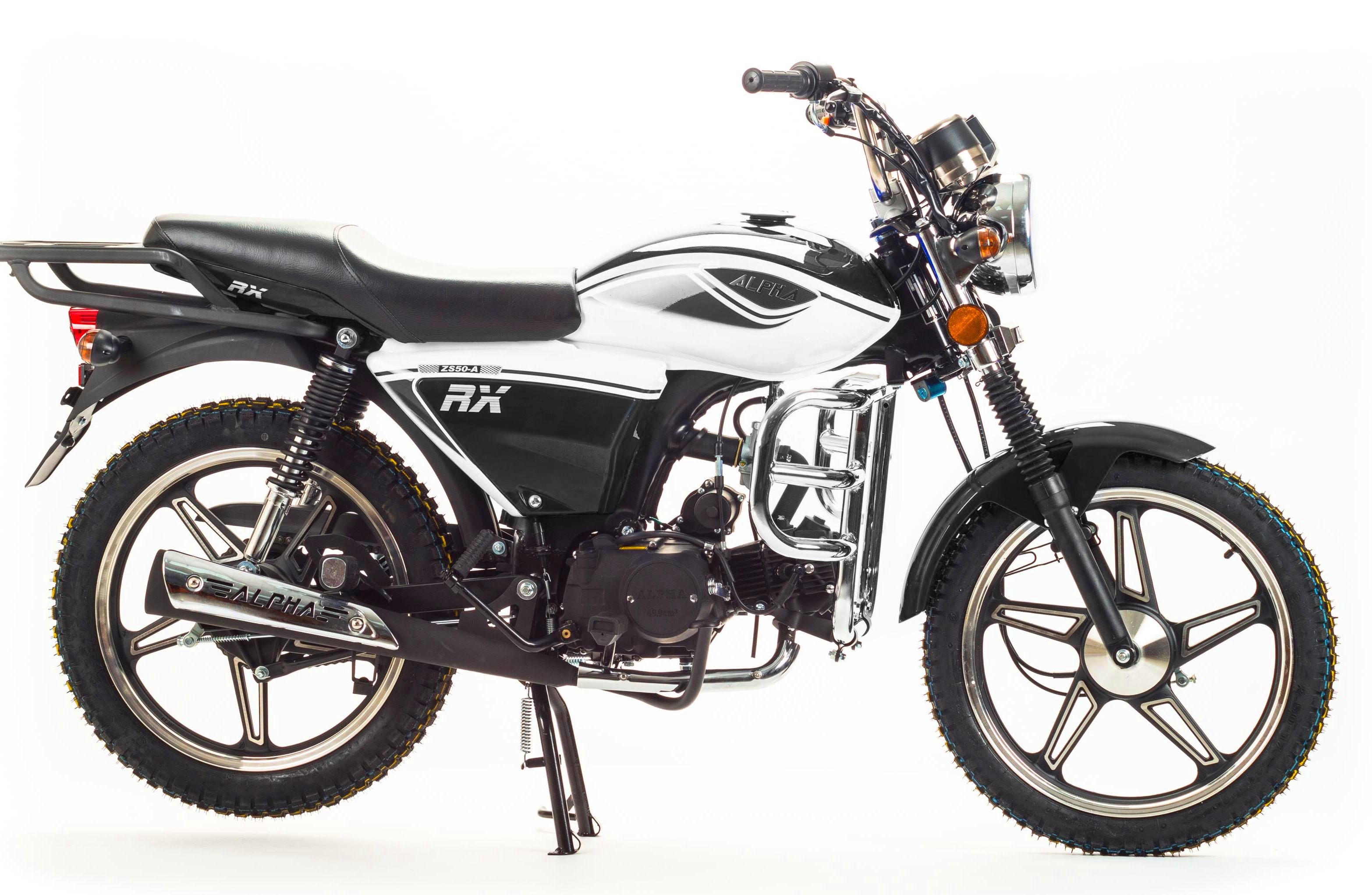 MotoLand Alpha RX7 это продолжение легендарного и всеми любимого мопеда Alpha, внешний вид приобрел современную и эргономичную форму, было добавлено достаточное количество хромированных деталей, которые придают солидность.