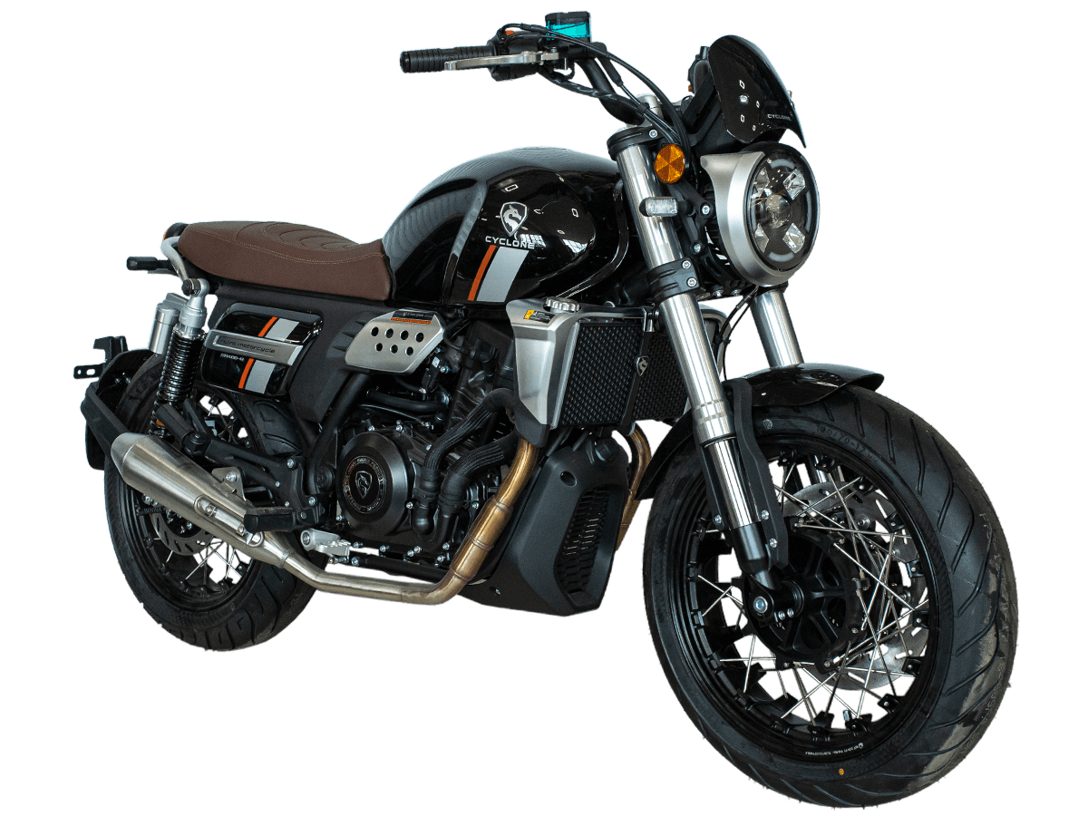 CYCLONE RE401 (SR400-B) 2024 – классик, в котором подчёркнутая простота объединяется с современными технологиями. Данная модель является более продвинутой версией модели RE3 (SR-400) – мотоцикл обладает более современным дизайном, снабжён стильными металлическими накладками на радиатор, а также топливным баком, объём которого увеличен до 20 литров.