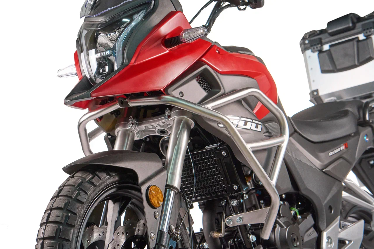 Мощный и экономичный двигатель с инжектором Bosch: Сердце мотоцикла — 286-кубовый мотор с жидкостным охлаждением, выдающий 27 л.с. и 27,3 Нм крутящего момента. Система впрыска топлива Bosch EFI обеспечивает стабильную работу, низкий расход (всего 3,2 л/100 км) и мгновенный отклик на газ. Абсолютный контроль и безопасность: Телескопическая перевернутая вилка и регулируемый моноамортизатор гарантируют плавность хода, а дисковые тормоза с ABS — уверенное торможение в любых условиях. Литые диски и шины 110/70-17 спереди и 140/70-17 сзади обеспечивают отличное сцепление с дорогой. Удобство и готовность к любым поездкам: Эргономичная посадка с высотой 780 мм, 16-литровый бак и двухместное сидение делают DY300-XF идеальным выбором для ежедневных поездок и путешествий. Защита двигателя, задний багажник и полная комплектация — все для вашего комфорта и практичности.