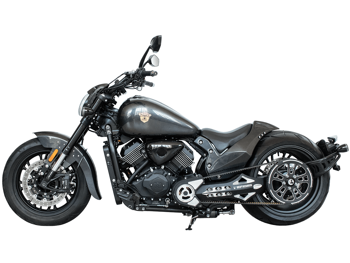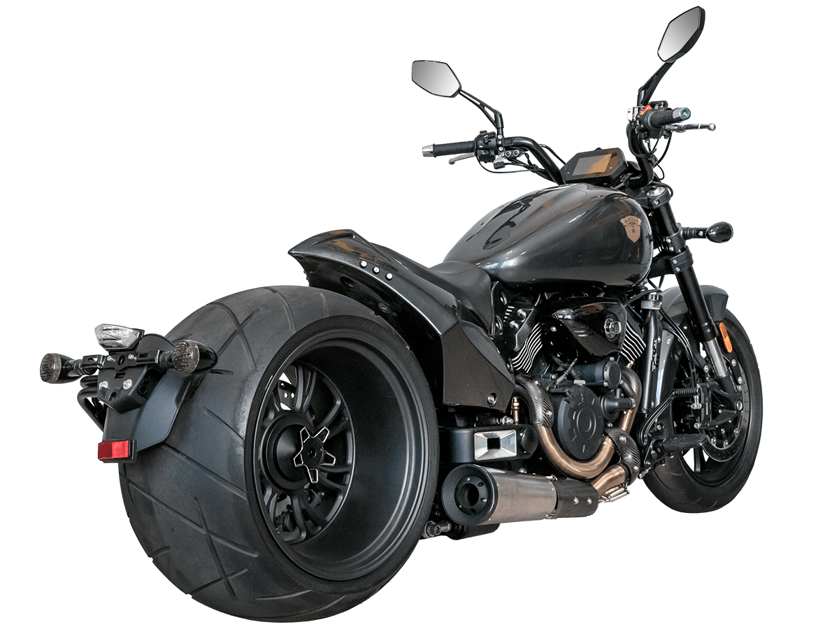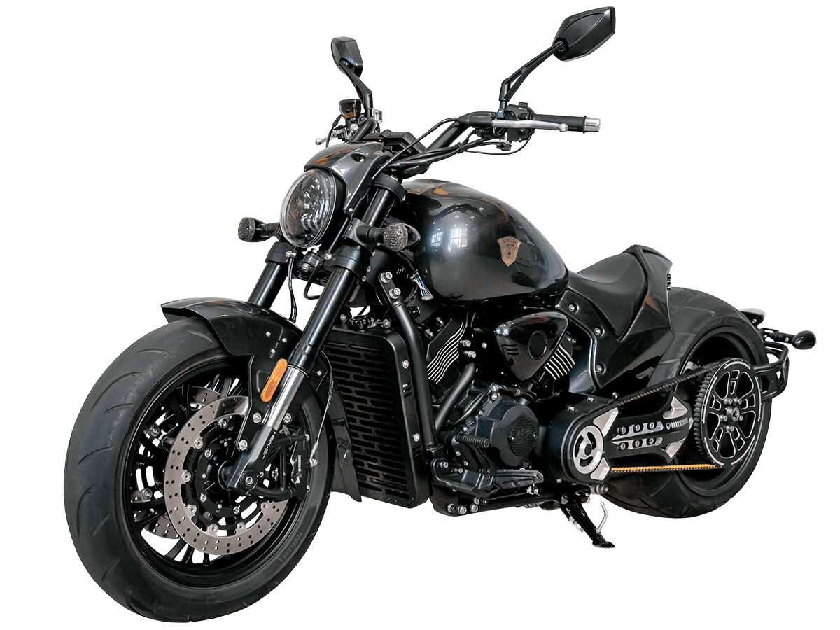 GROZA Wolverine 800 – ультимативный круизёр, который будто бы сошёл со страниц эксклюзивного каталога кастом-байков. Модель названа в честь росомахи – одного из самых свирепых, ловких и бескомпромиссных хищников в животном мире. Пилотируя этот байк, вы не имеете шанса остаться в потоке незамеченным. А в случае, если кто-то на светофоре решит посостязаться в дрэг-рейсинге, 800-кубовый V-твин и гигантская задняя покрышка не оставят преследователям никаких шансов.
