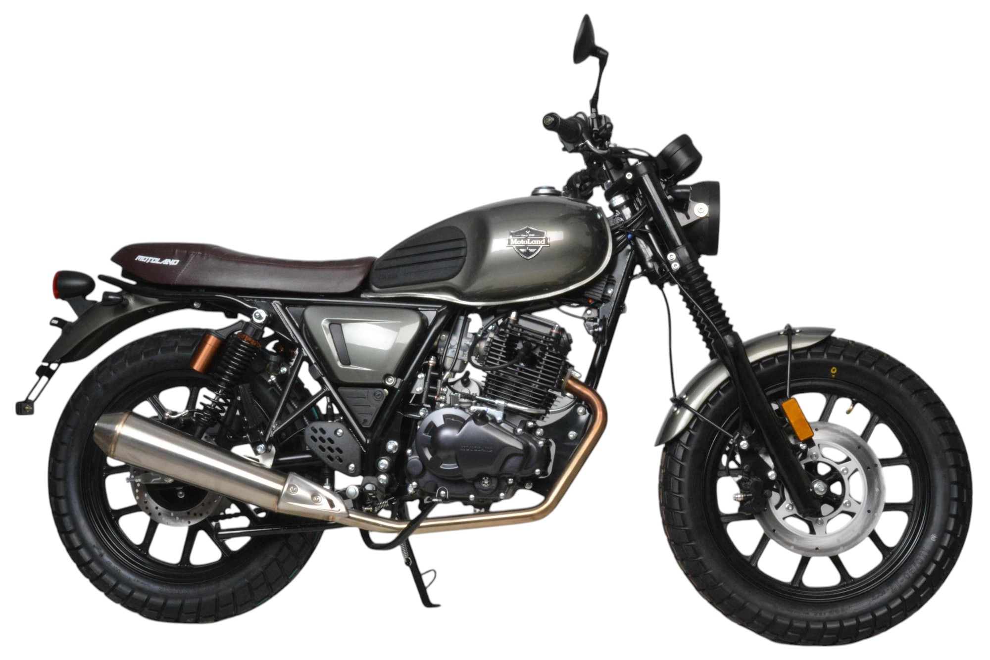 TEXAS 300 PRO. Дизайн мотоцикла выполнен в ретро стиле, укомплектованный обновленная LED-фарой, приборной панелью, USB-зарядкой, креплением номерного знака, резиновыми накладками на бак, обновленным глушителем из нержавеющей стали и прочими канонами современности. Классическая посадка, мягкое кожаное сиденье и литые колеса – всё это способствует комфортному управлению по асфальтированным дорогам и пересеченной местности.