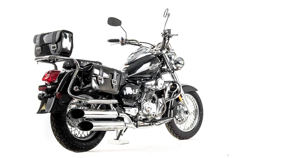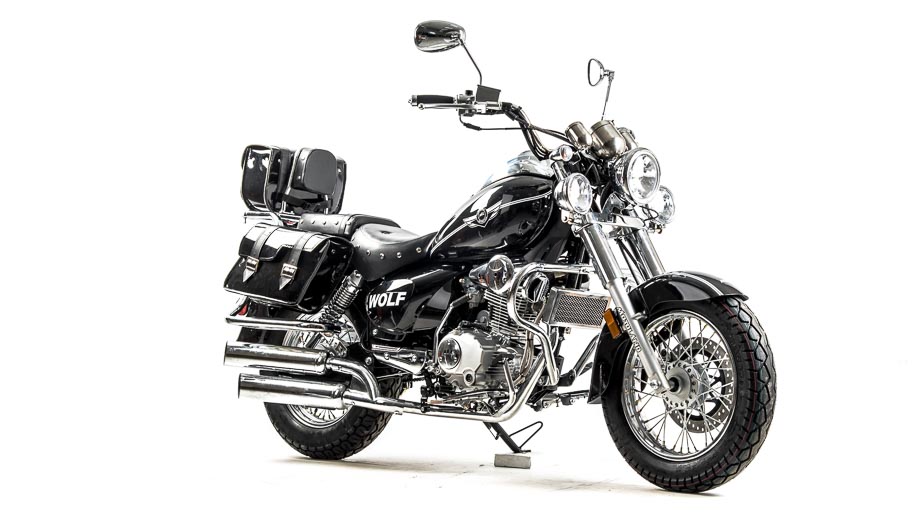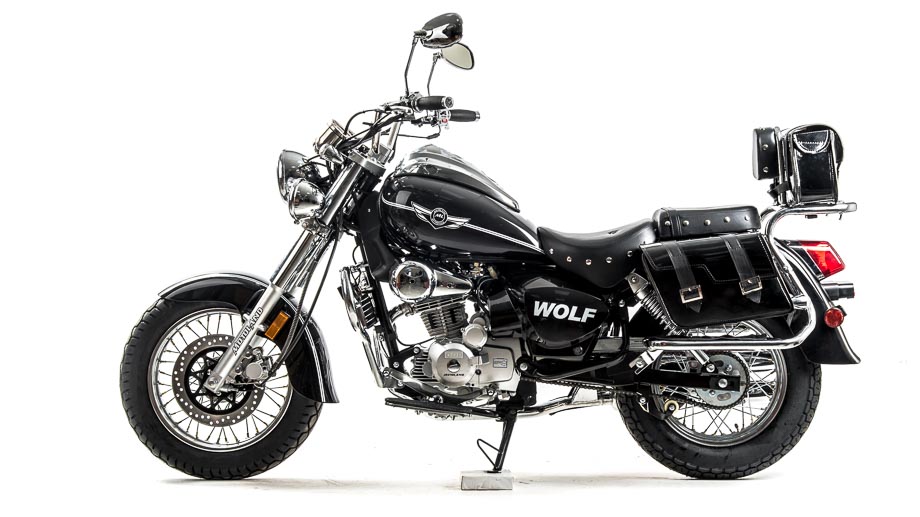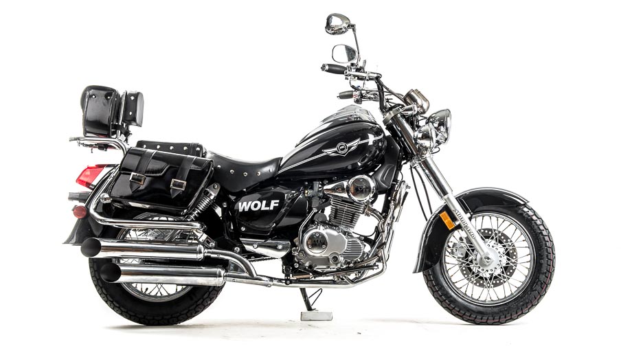 Чоппер WOLF 250 сразу привлекает внимание своим внешним видом. Выполнен в винтажно-классическом стиле с удлинённой рамой и передней вилкой, обилием хромированных элементов. Солидный, матово-чёрного цвета — этот чоппер выглядит значительно лучше своей ценовой категории.