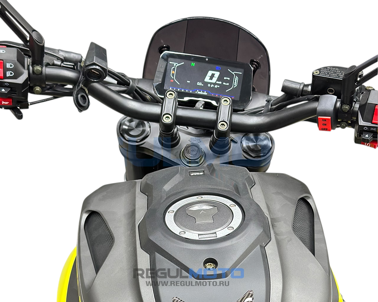 - Полное LED-оснащение: фара, стоп-сигнал, поворотники + доп. жёлтый свет (противотуманки)