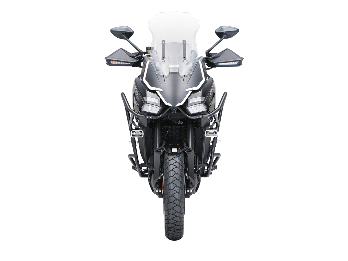 На мотоцикле используется яркая LED-оптика с дополнительным светом и многофункциональная приборная TFT-панель, положение которой можно регулировать. Рычаги тормоза и сцепления можно регулировать. Руль оснащён функцией подогрева и защитой рук. Спереди и сзади установлены видеорегистраторы. Мотоцикл оснащён датчиками давления в шинах. Ветровое стекло имеет электронную регулировку и настраивается через кнопки на руле. Имеется 2 USB-порта. Вещи можно перевозить в багажном отсеке, или присоединить кофры для перевозки: имеется площадка для установки центрального кофра и крепления для боковых кофров. Мотоцикл поставляется с центральной подножкой в комплекте.