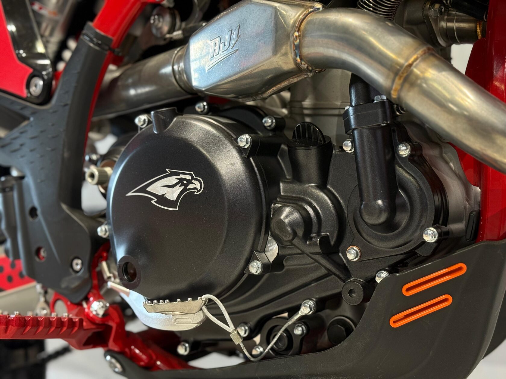 В основе модели установлен двигатель ZS177 с диаметром поршня 84 мм — тяговитый и отзывчивый мотор, который уверенно чувствует себя как на техничных лесных маршрутах, так и на скоростных открытых участках. Водяное охлаждение поддерживает стабильную рабочую температуру даже при интенсивной нагрузке, а карбюратор Nibbi Racing PWK 34 Black обеспечивает точную подачу топлива и быстрый отклик на газ. В сочетании с выхлопной системой AJ1 двигатель раскрывает свой потенциал плавно и предсказуемо, позволяя райдеру полностью контролировать тягу.