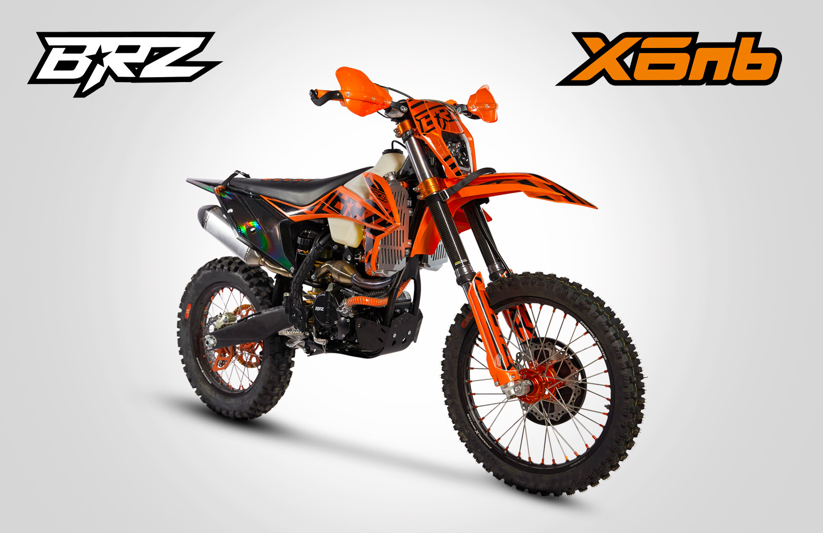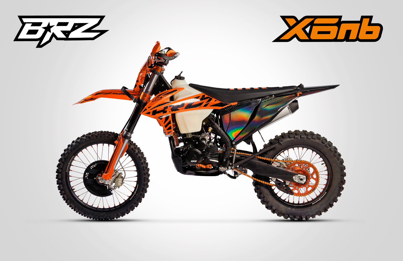 BRZ X6nb выполнен в дизайне KTM 2020-2022. Особую индивидуальность подчеркивает применение разного цвета пластика на передней и задней части мотоцикла. Задняя часть у всех моделей черного цвета. Передняя же часть выполнена в собственной цветовой схеме. Также получила новый дизайн фара головного света. Она стала пятидиодная с нижней «ресничкой». Особое внимание уделено наклейкам. В дизайне графики использованы новые технологии, которые позволили сделать отдельные элементы с зеркальным эффектом. Цвета всех элементов подобраны таким образом, чтоб мотоцикл был внешне максимально гармоничным и законченным.