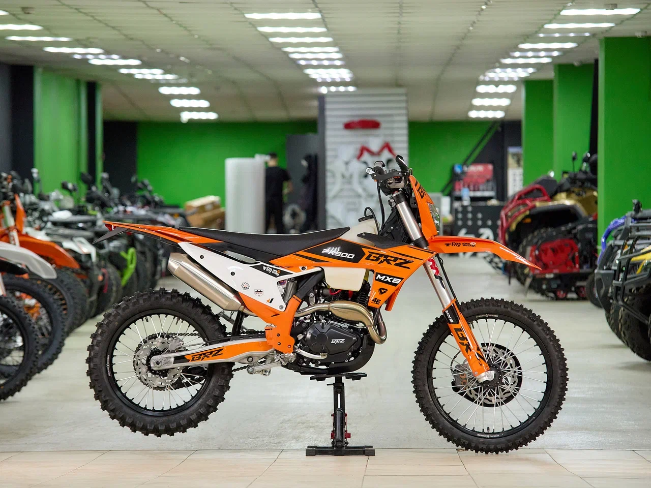Размер и тип колес – 21х18 обода алюминиевые.Размер передней покрышки 80/100-21. Размер задней покрышки 120/100-18