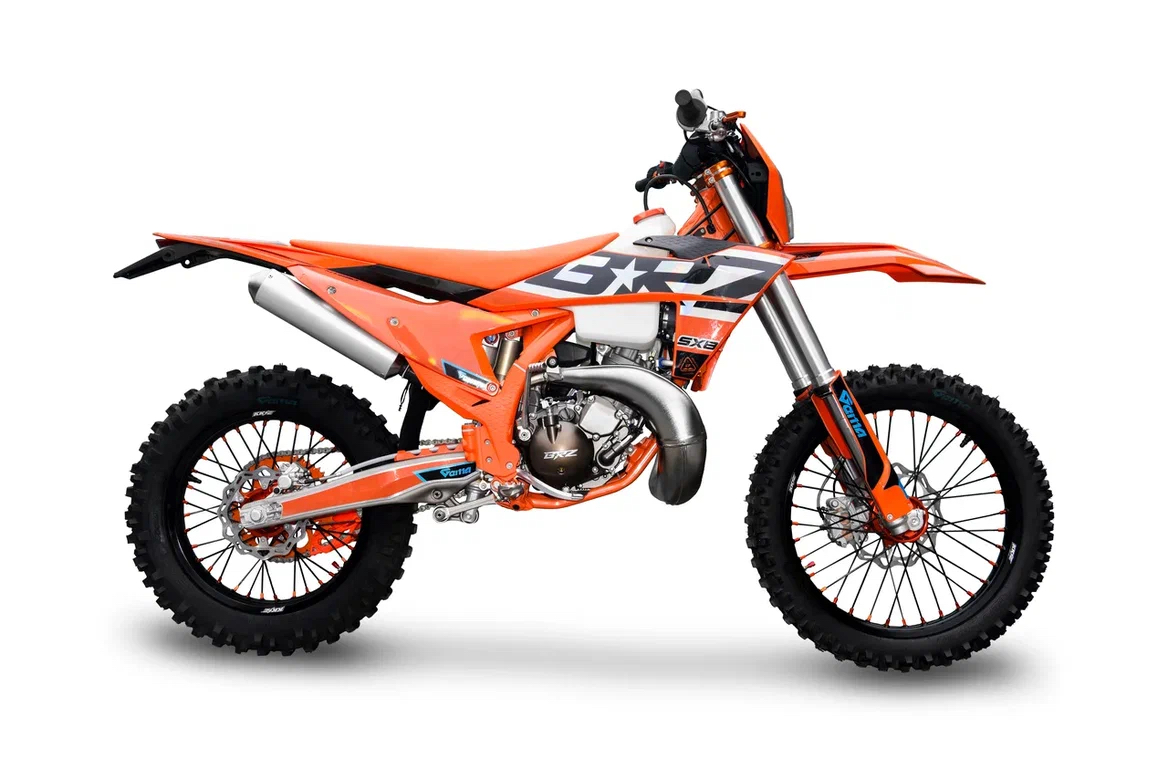 - Размер и тип колес – 21х18 обода усиленные алюминиевые, сплав 7 серии, фрезерованные ступицы ККЕ. Передняя покрышка GEMA F-ENDURO 90/90-21. Задняя покрышка GEMA EX SUPER SOFT 140/80-18.