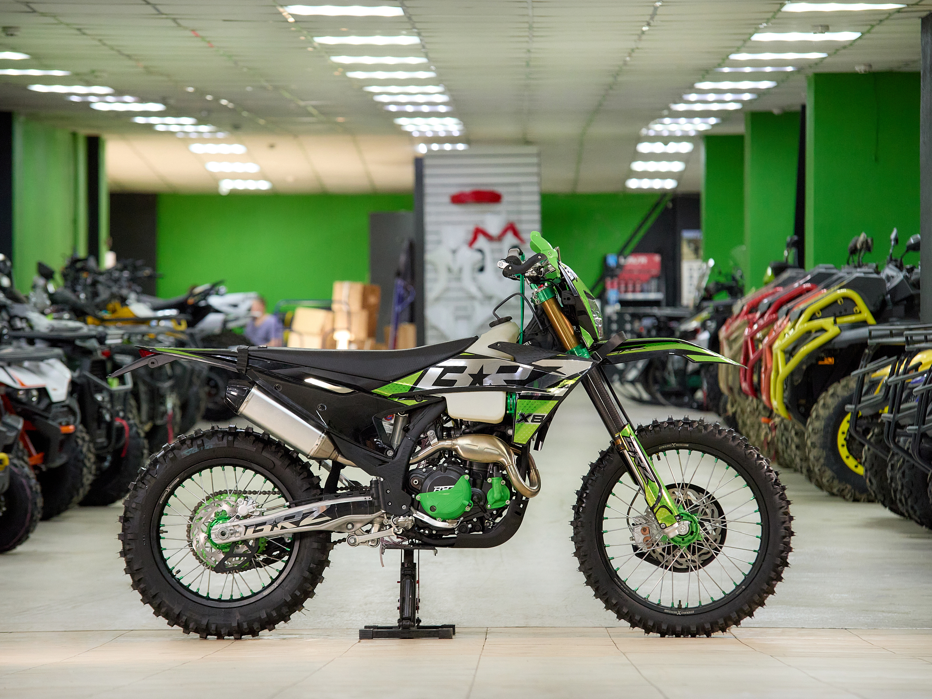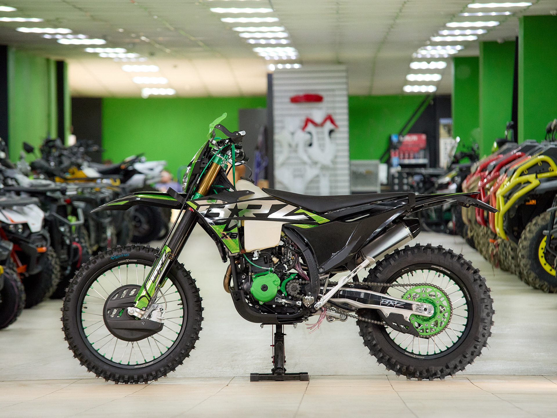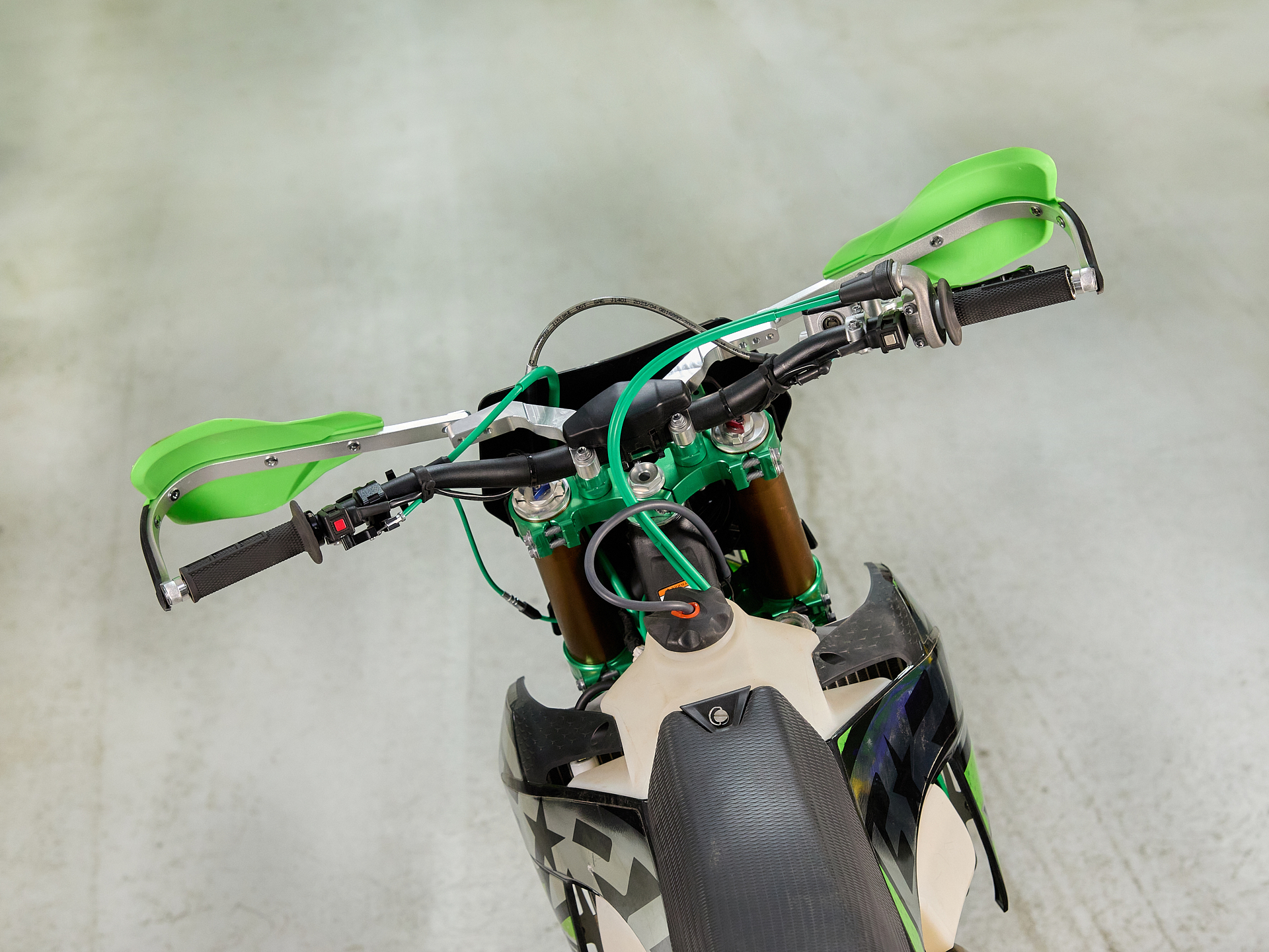 Навесное – Руль 28мм. Короткоходная ручка газа. Цепь 520. Алюминиевая лапка КПП, боковые накладки на рамы. Счетчик моточасов, приборная панель. Стоп сигнал.