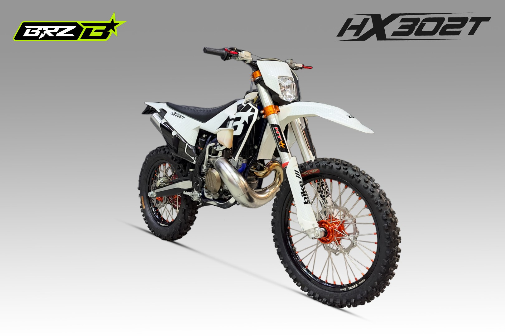 Полноразмерный мотоцикл BRZ HX302t, колесная база 1470 мм. Двухтактный мотор жидкостного охлаждения, рабочим объемом 320 куб.см. КПП на 6 передач.