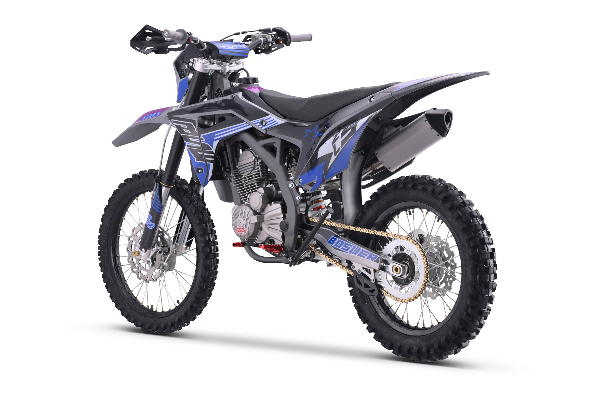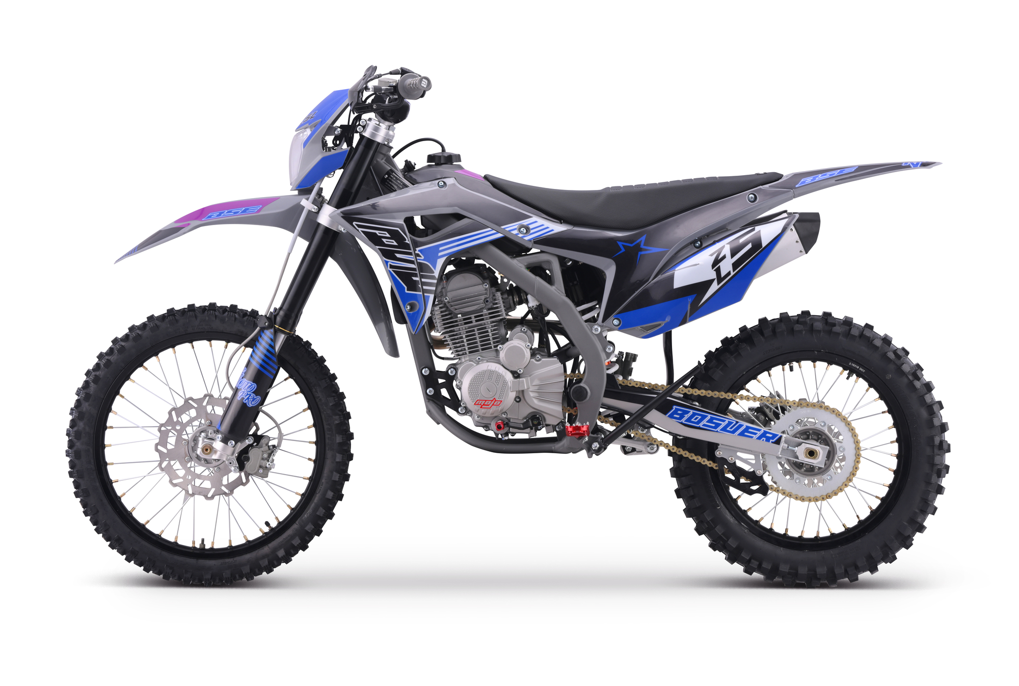 За основу мы взяли успешный полноразмерный Z5 и упростили комплектацию, чтобы сделать максимально привлекательный прайс, оставив главные компоненты — надежный 250-кубовый мотор Zonsen и усиленную стальную раму Bosuer. В итоге получили полноразмерный, функциональный и мощный эндуро мотоцикл. Идеально сбалансированный, устойчивый и готовый прощать ошибки при езде.