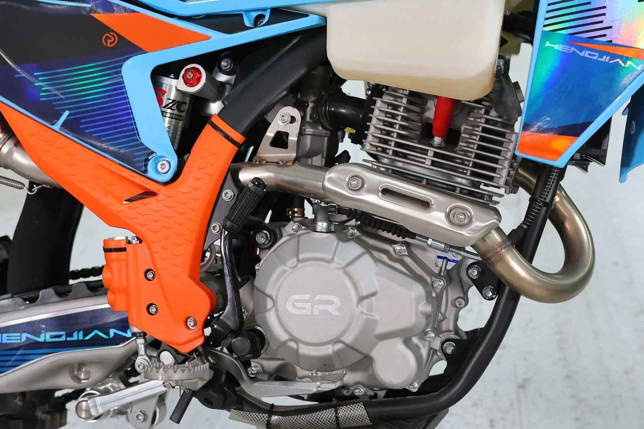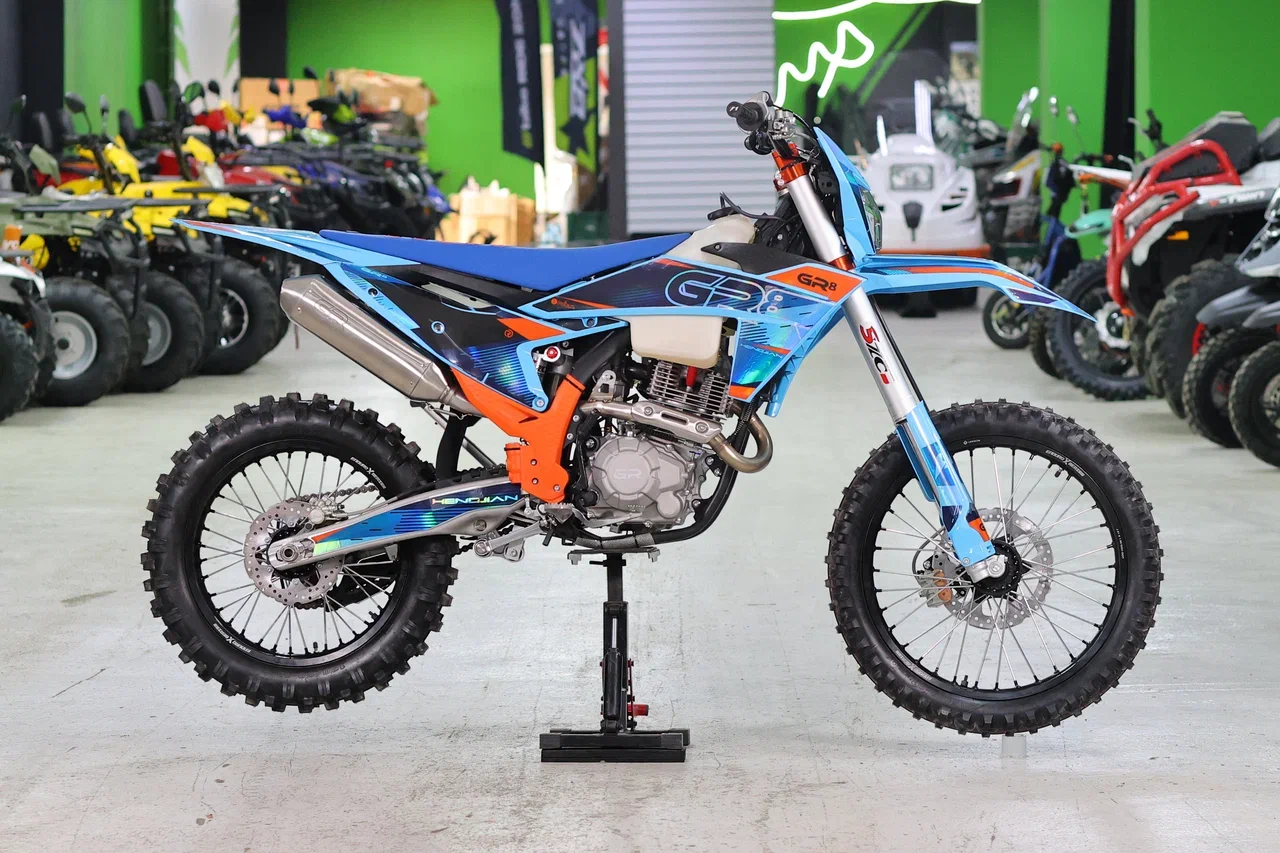 Мотоцикл GR8 F300A (4T CB300) Enduro Lite 2024 модельного года – идеальный снаряд для внедорожного экстрима. Это оптимальный баланс производительности и технической оснащённости. Модель обладает высокими характеристиками, которые позволяют справляться с непростыми условиями маршрутов как на кроссовых трассах, так и в хард эндуро.