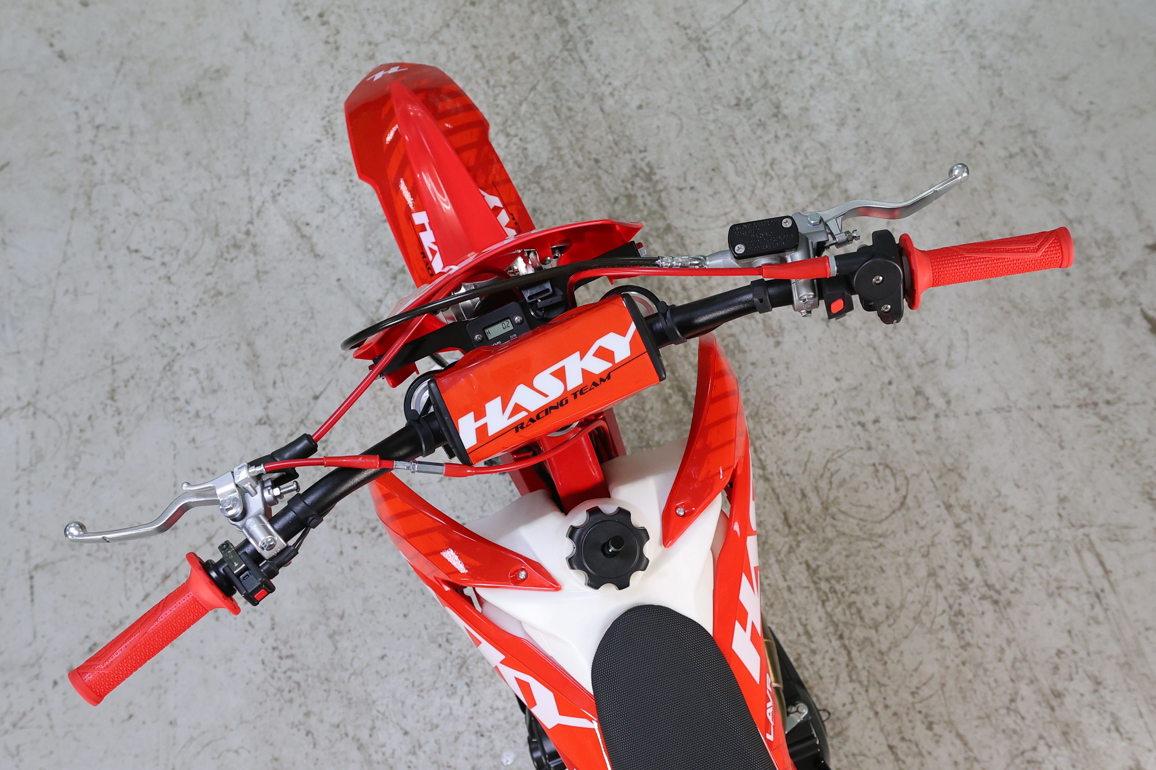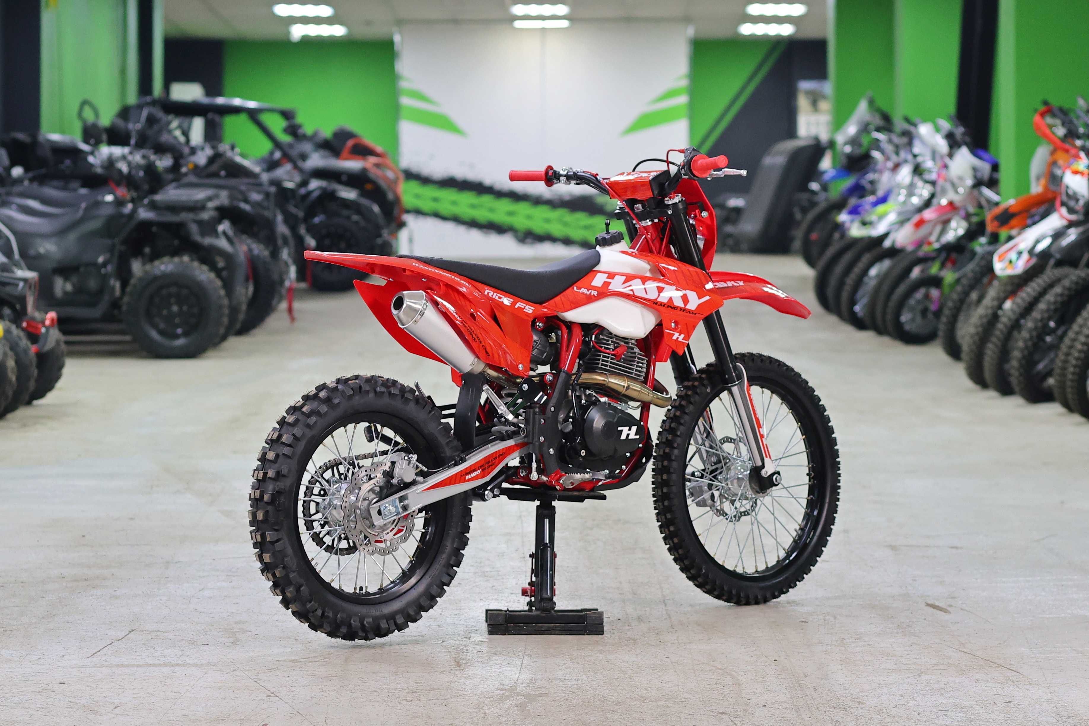 Hasky F5 Ride 2025 представляет собой самую доступную модель в линейке бренда, отличаясь от старшей F5 PRO 2025 комплектацией, но сохраняя при этом надежность и качество, присущие семейству Hasky. Этот среднеразмерный эндуро-мотоцикл на колесах 21"/18" построен на прочной раме K5.