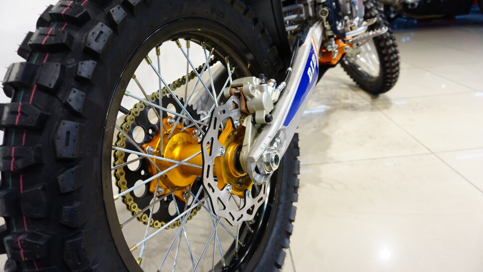 Влагозащищенная фара с пятью яркими диодами позволяет использовать мотоцикл в темное время суток.Задний габаритный фанарь.Прочная пластиковая защита рук Caken. Задний балон 120 для более большего пятна контакта. С Hasky F6 покарять новые высоты будет только в радость.