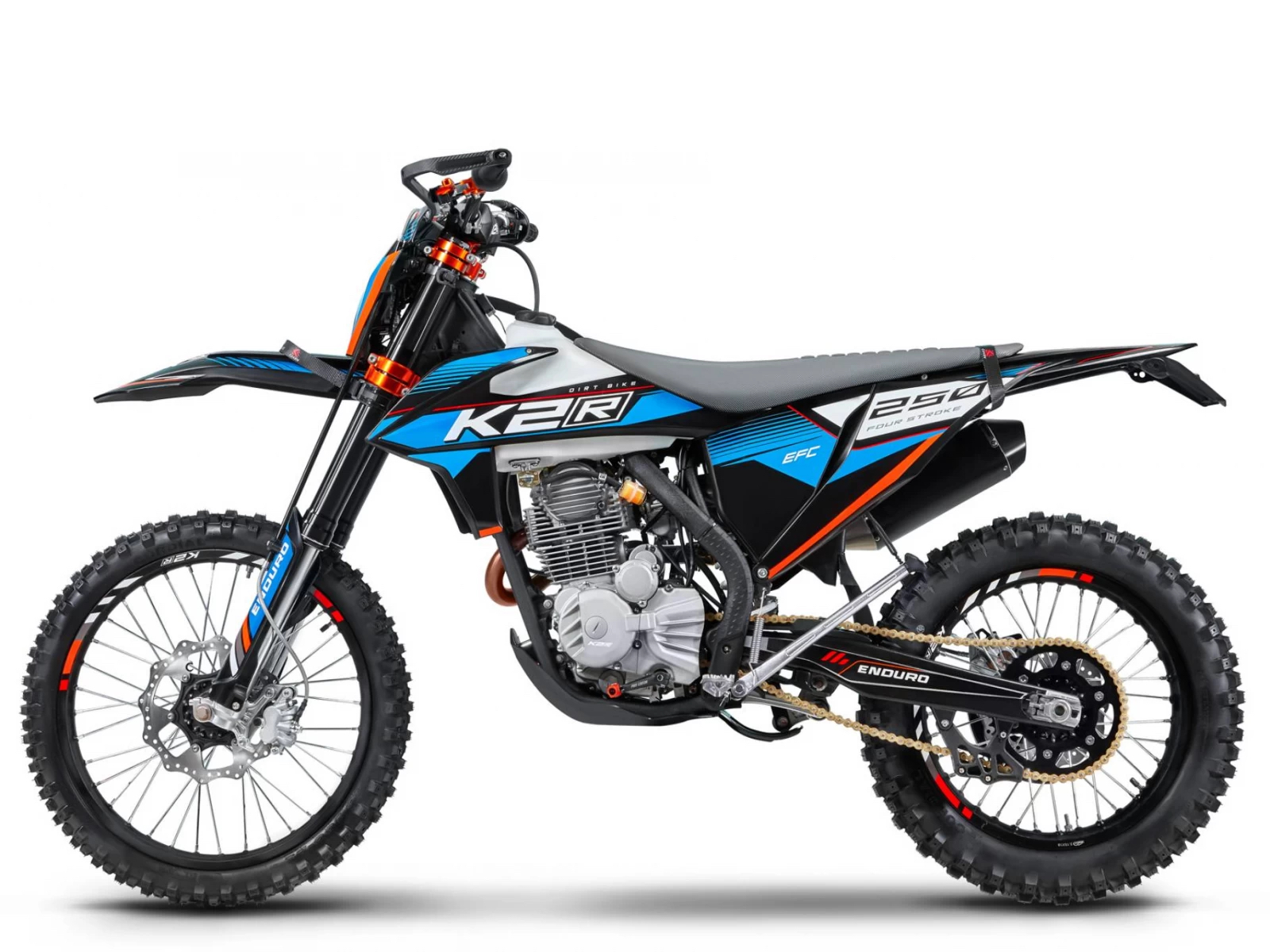 K2R 250 EFC – это мотоцикл класса эндуро базового уровня. Оснащается двигателем 172FMM – одним из самых простых